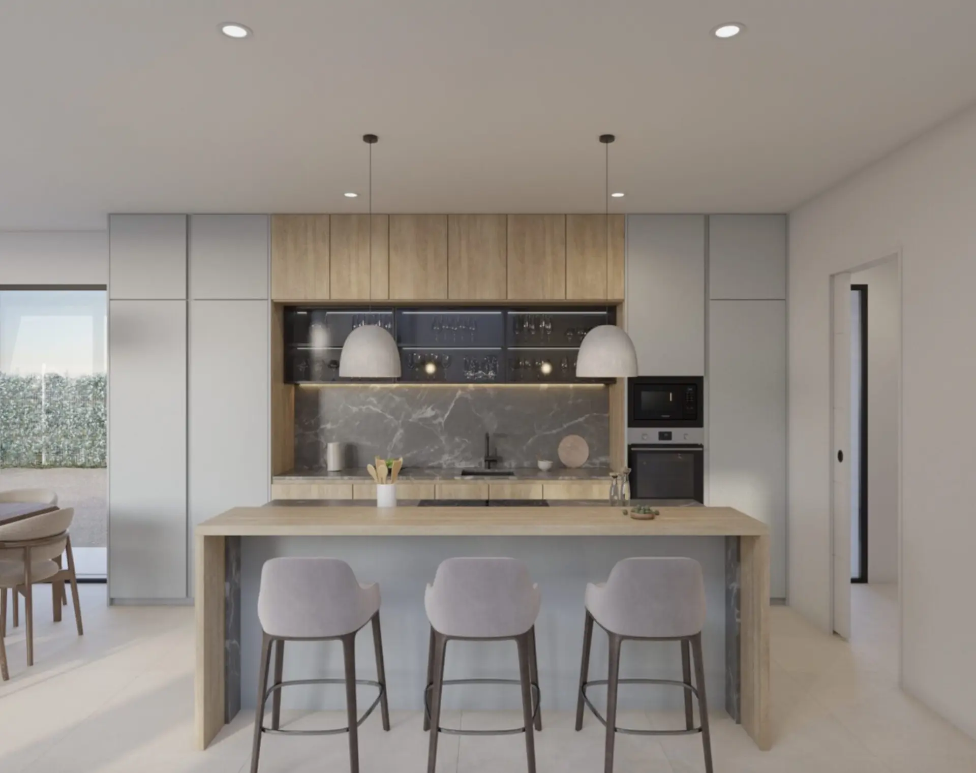 Es stehen fünf verschiedene Villentypen zur Verfügung, jedes mit seinem eigenen Layout und Charakter. Sie können zwischen 3 oder 4 Schlafzimmer und 2 oder 3 Bäder wählen, je nach Ihren Bedürfnissen. Alle Häuser haben einen offenen Wohnbereich, eine voll ausgestattete Küche und große Fenster, die das Haus mit natürlichem Licht füllen. Die Badezimmer sind mit Möbeln, Spiegeln und Duschen ausgestattet, alle mit hochwertigen Materialien fertig.