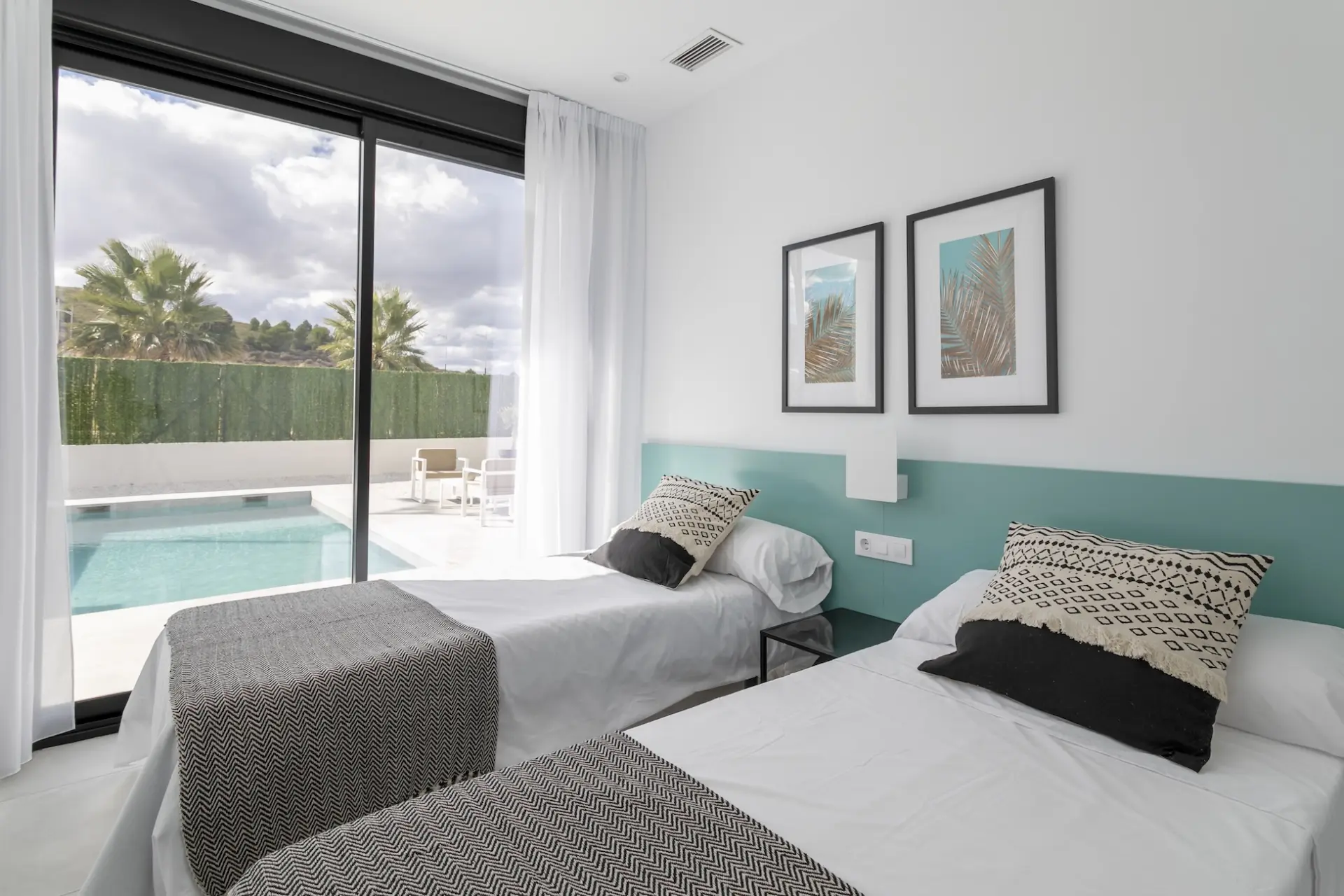 Jedes Haus verfügt über 3 Schlafzimmer, 2 Badezimmer, ein geräumiges offenes Wohnzimmer und einen separaten Waschraum. Die Küche ist voll ausgestattet mit hochwertigen Geräten, einem eleganten Silestone Arbeitsplatte und viel Stauraum. Sie finden auch Einbauschränke, LED-Beleuchtung und elektrische Rollläden in den Schlafzimmern.