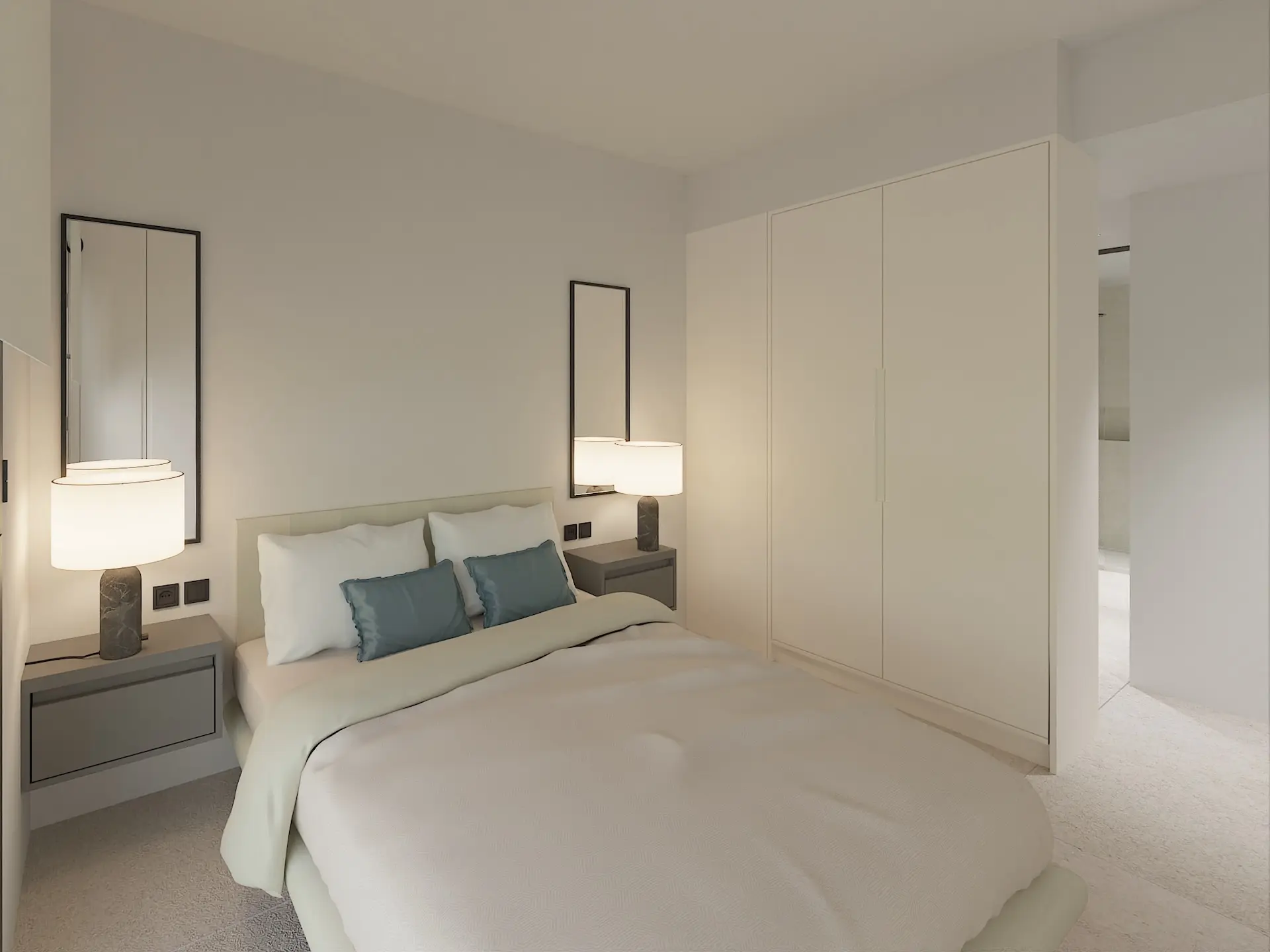 Die Anlage besteht aus Wohnungen mit 2 Schlafzimmern und 2 Bädern, die im Erdgeschoss mit Garten oder im Obergeschoss mit Dachterrasse verfügbar sind. Alle Modelle verfügen über einen offenen Wohnbereich, in dem Wohnzimmer, Esszimmer und Küche in einem Raum kombiniert sind, mit großen Fenstern, die auf eine Terrasse mit außergewöhnlichem Meerblick führen. Die Modelle im Erdgeschoss verfügen zudem über einen kleinen Keller, der sich ideal als Abstellraum eignet. Die Modelle im Obergeschoss verfügen über einen multifunktionalen Raum unter der internen Treppe zur Dachterrasse, ideal als Homeoffice, sowie einen abgeschlossenen Raum auf der Dachterrasse. Die großzügige Dachterrasse ist perfekt, um die mehr als 300 Sonnentage im Jahr zu genießen.
