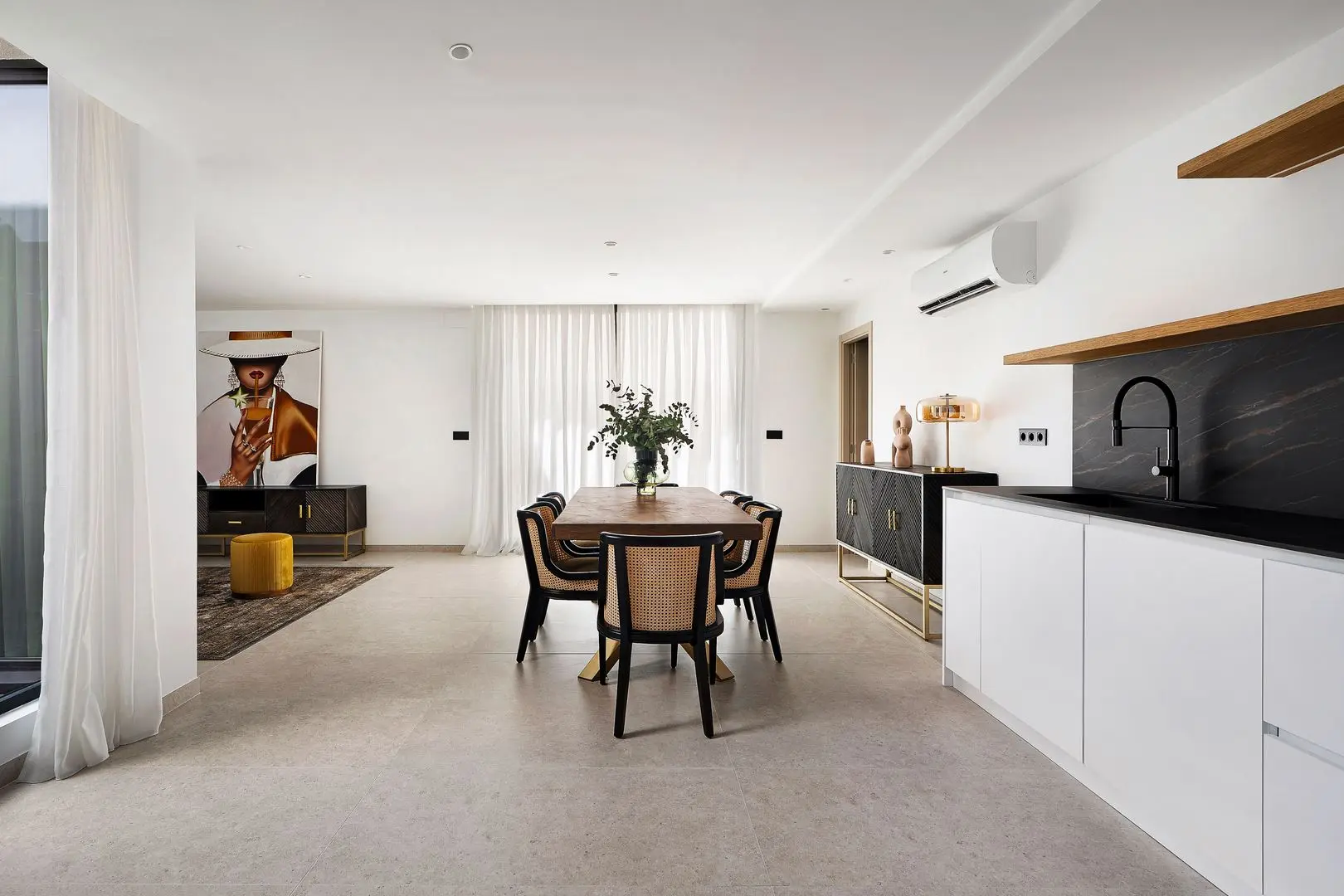 Weitere Vorteile sind 10 Solarpaneele, Smart-Home-Automatisierung, Klimaanlage mit Kanalsystem, hochwertige Isolierung und 24/7-Sicherheitsdienst. Zudem werden Garten und Pool vollständig gepflegt, was ein sorgenfreies Wohnen garantiert.