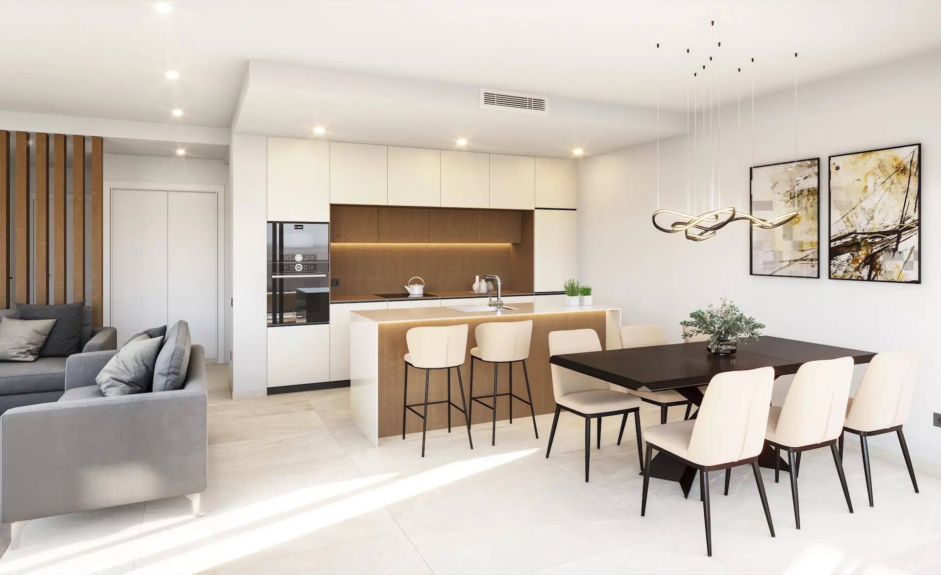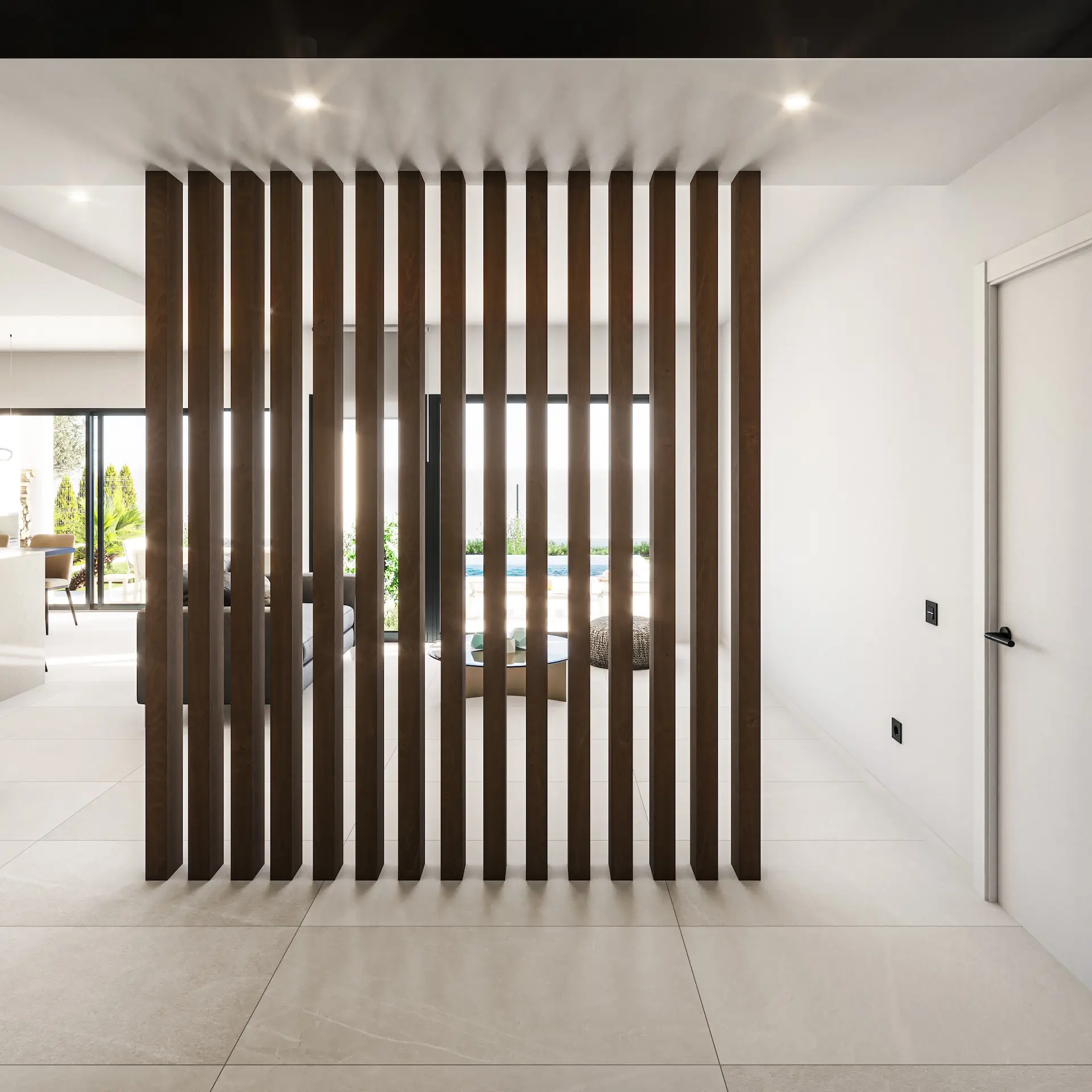 Mit hochwertigen Materialien, Vorinstallation für Klimaanlage, Einbauschränken, elektrischen Rollläden und energieeffizienten Ausstattungen wurde diese Villa für höchsten Wohnkomfort konzipiert. Ein eigener Parkplatz auf dem Grundstück macht das Haus noch praktischer für den täglichen Gebrauch.