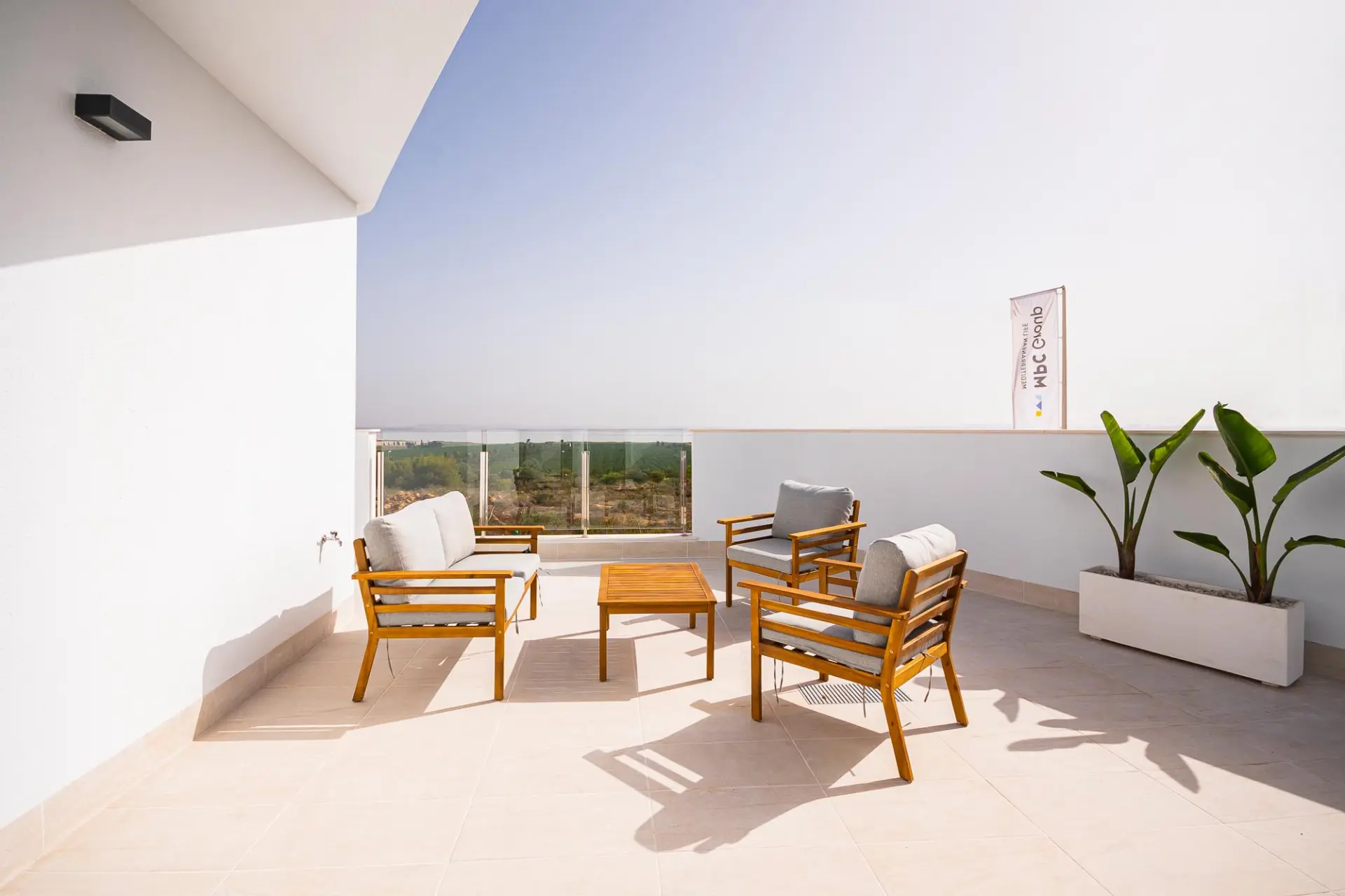 Zu verkaufen: eine exklusive Eckvilla in Los Balcones, Torrevieja. Diese moderne Neubauvilla befindet sich auf einem großzügigen Eckgrundstück, wodurch Sie von zusätzlicher Privatsphäre, mehr Lichteinfall und zusätzlichem Außenbereich profitieren. Nur 10 Minuten von den Stränden und in unmittelbarer Nähe zu den berühmten Salzseen gelegen, bietet diese Immobilie die perfekte Mischung aus Ruhe, Komfort und mediterranem Lebensstil.