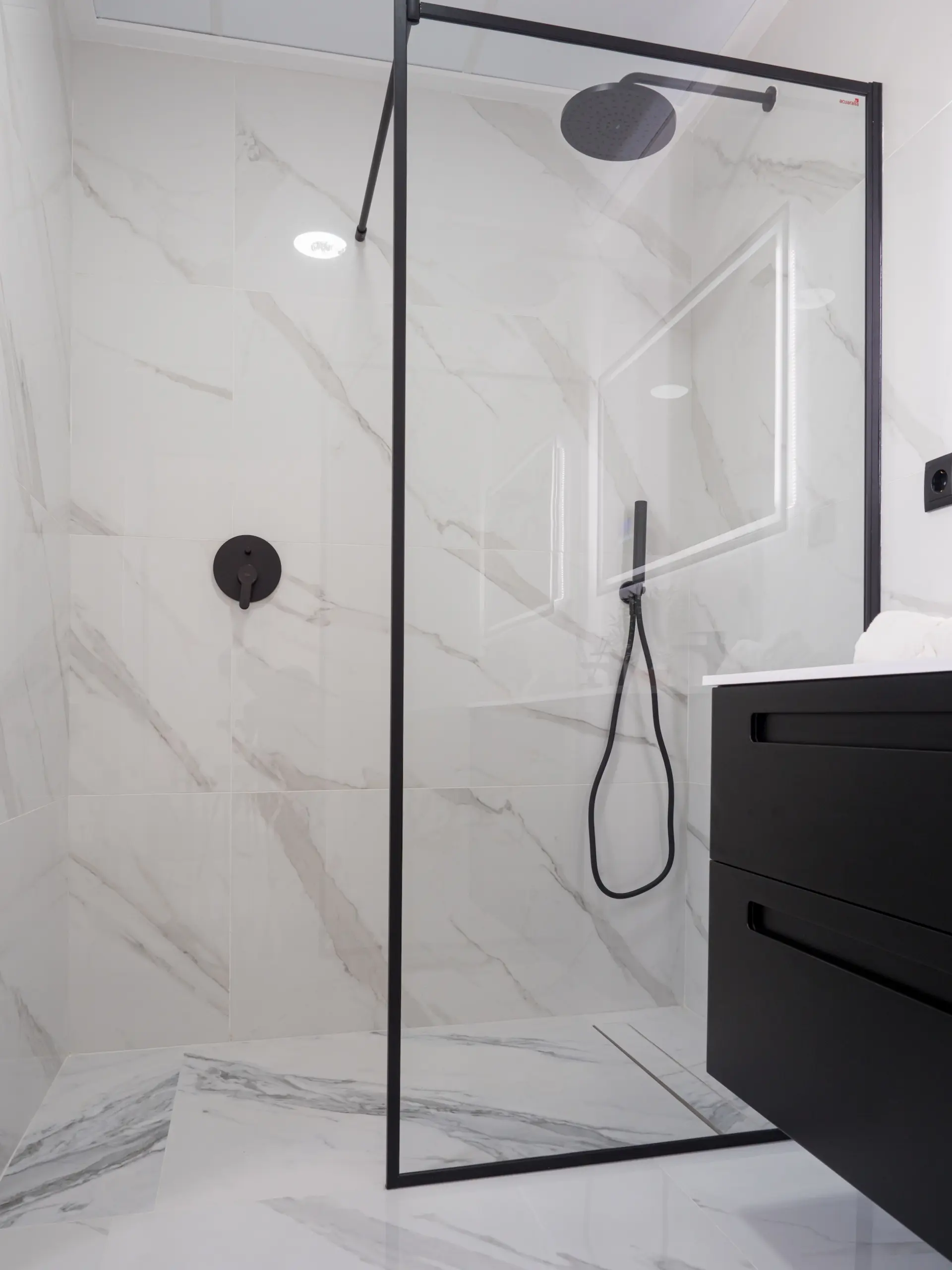 Jede Villa ist mit einem durchdachten, offenen Grundriss gestaltet und verfügt über 3 Schlafzimmer und 3 Badezimmer, davon 2 en suite. Im Erdgeschoss befindet sich ein zusätzliches Schlafzimmer mit komplettem Bad – ideal für Gäste oder mehrere Generationen. Der helle Wohnbereich mit offener Küche schließt direkt an die sonnige Terrasse an und ist mit hochwertigen Materialien, Fußbodenheizung in allen Bädern und vorinstallierter Klimaanlage ausgestattet.