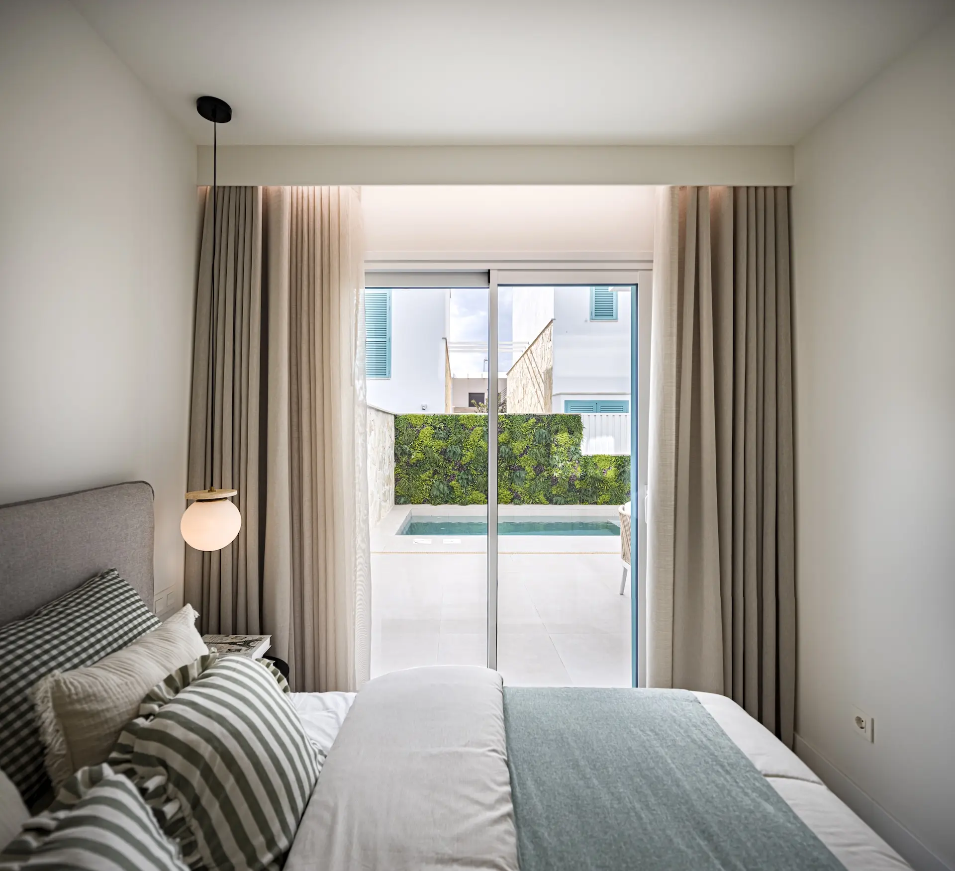 Die Apartments sind in zwei Ausführungen erhältlich: Erdgeschoss oder Obergeschoss. Die Erdgeschosswohnungen verfügen über 2 oder 3 Schlafzimmer, 2 Badezimmer und eine großzügige Terrasse, die direkt an die schön angelegten Gemeinschaftsgärten anschließt. Hier genießen Sie einen nahtlosen Übergang zwischen Innen- und Außenbereich – perfekt für Frühstück in der Sonne oder entspannte Sommerabende.