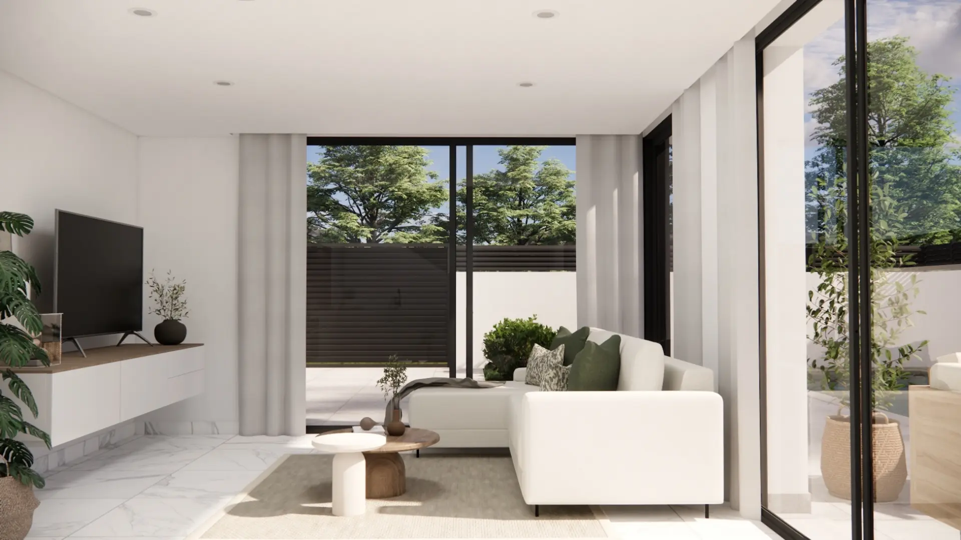 À l’extérieur, chaque villa dispose d’une piscine privée – parfait pour se rafraîchir pendant les journées ensoleillées ou profiter du temps entre amis et en famille. Jardins paysagers et parking hors route ajoutent intimité et commodité. Un solarium sur le toit en option est disponible pour ceux qui veulent encore plus d’espace extérieur – idéal pour bronzer ou profiter de vues du soir. Ces espaces extérieurs sont conçus pour tirer le meilleur parti du climat méditerranéen, offrant une retraite privée pour le repos et les loisirs.