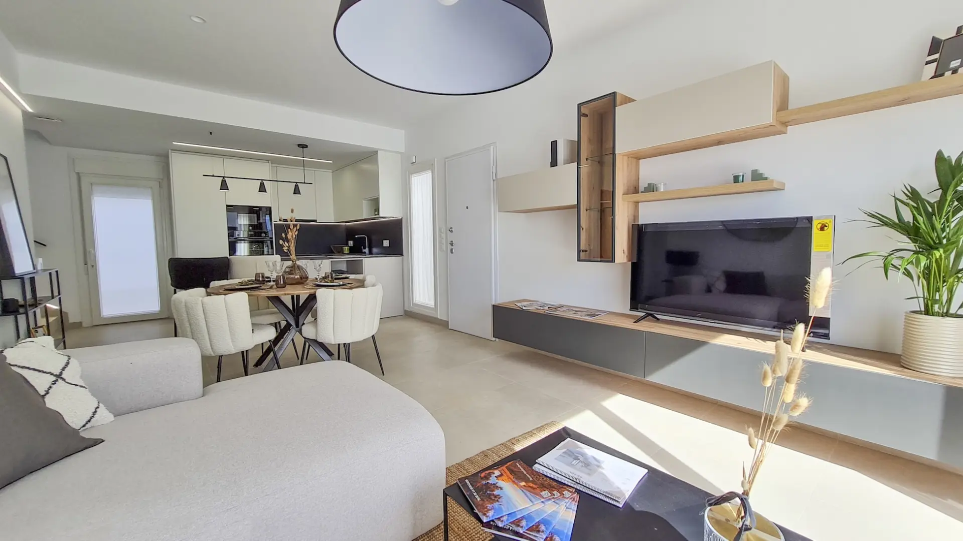 Chaque maison dispose de 3 chambres et 2 salles de bains complètes, réparties sur une disposition lumineuse et ouverte. Le salon principal se connecte parfaitement avec une cuisine entièrement équipée, offrant un espace confortable pour la vie de famille et divertissant. Les finitions de qualité comprennent des armoires, des volets électriques, un interphone vidéo et un système aérothermique moderne pour l’efficacité énergétique. De grandes fenêtres permettent une lumière naturelle abondante pour remplir les intérieurs, créant ainsi une atmosphère chaleureuse et accueillante.