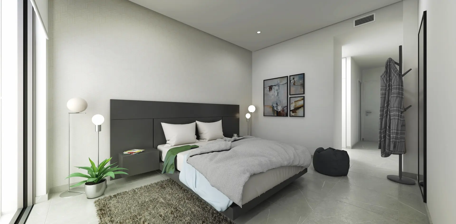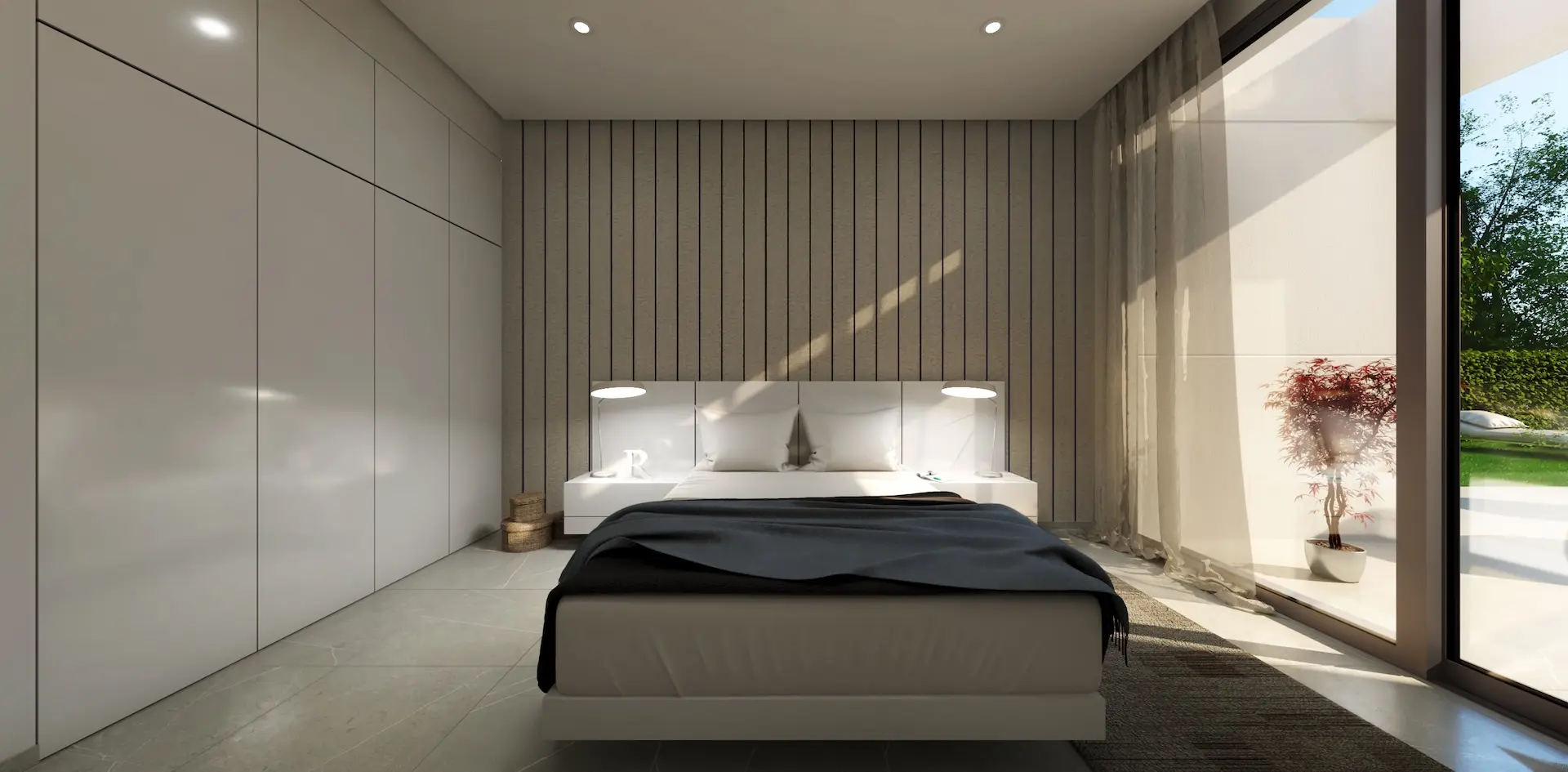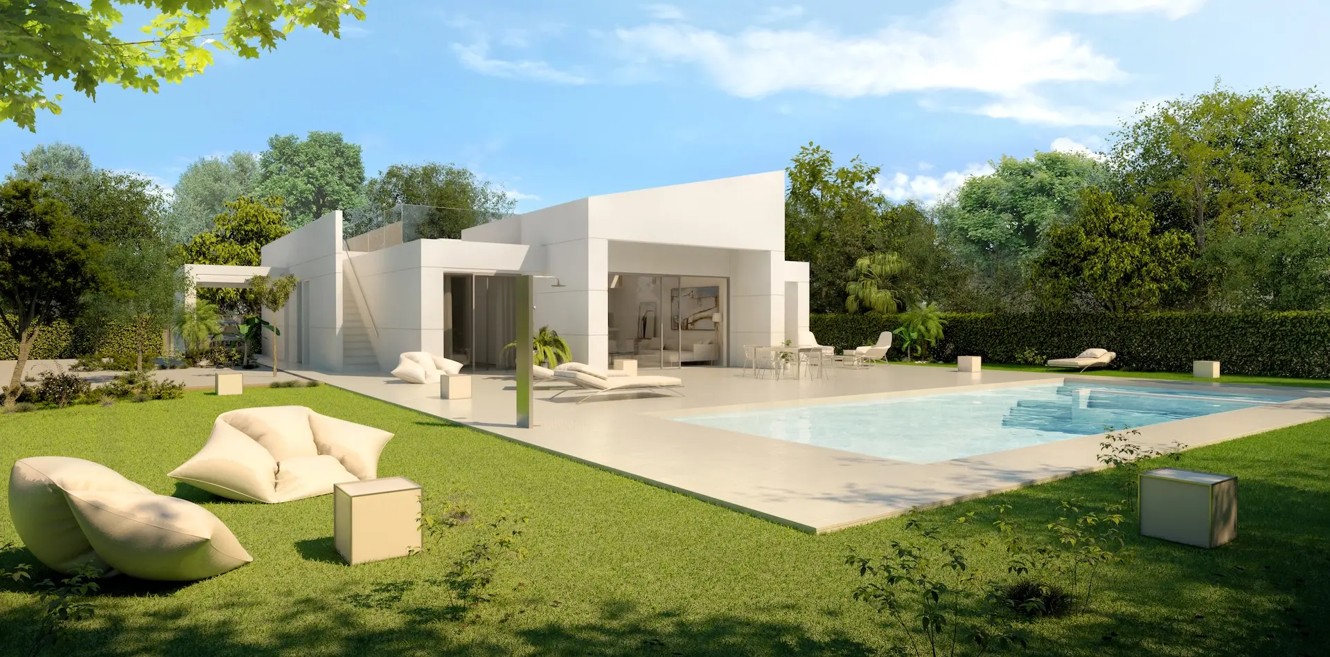Cette luxueuse villa neuve dispose de 4 chambres et 4 salles de bains, toutes de plain-pied, avec piscine privée et solarium. La villa comprend un salon, une salle à manger et une cuisine ouverte avec de hauts plafonds et des portes-fenêtres donnant sur la piscine et le jardin. Trois des chambres sont en suite, tandis que la quatrième dispose d’une salle de bains attenante. Toutes les salles de bains sont équipées du chauffage au sol. Les deux chambres à l’avant bénéficient également de portes-fenêtres donnant sur la piscine. Toutes les chambres sont dotées de placards intégrés. Un parking est disponible sur place. À l’étage, un vaste solarium vous attend.