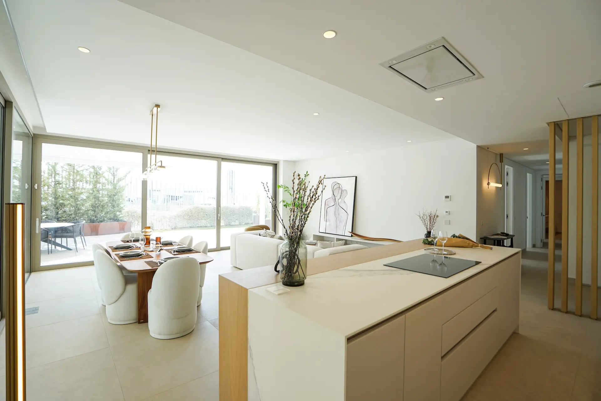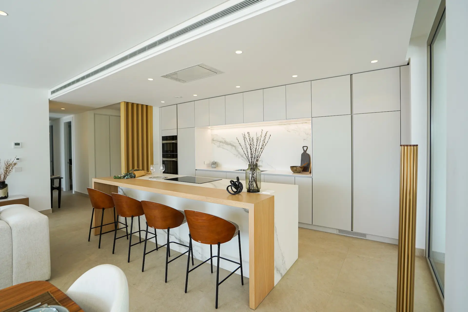 Les appartements disposent de pièces à vivre spacieuses et lumineuses, d’une cuisine design entièrement équipée, de deux suites parentales, d’une chambre supplémentaire (ou quatrième dans les plus grands logements) et de vastes terrasses. Finitions de qualité supérieure : chauffage au sol, climatisation réversible, éclairage LED, placards intégrés, façades vitrées et parking privé avec débarras.