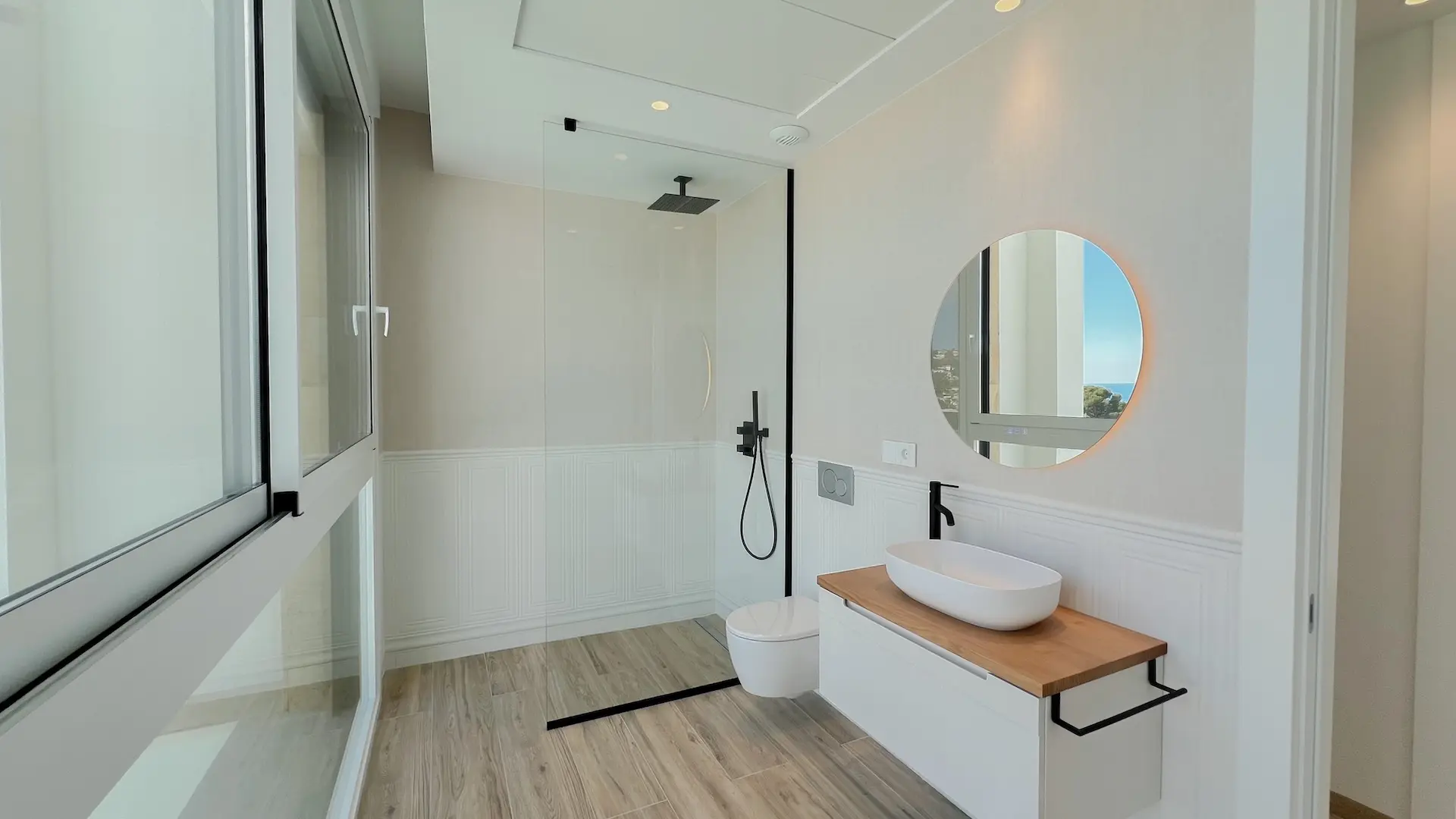 Les espaces extérieurs sont conçus pour profiter du climat méditerranéen toute l’année. Le magnifique jardin avec des plantes indigènes, la piscine à débordement et l’élégante zone de détente avec cheminée font de cet endroit l’endroit idéal pour se détendre et recevoir.