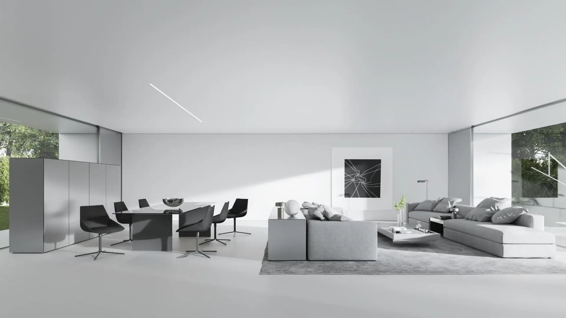 Le niveau principal est ouvert et divisé par le jardin intérieur en deux parties : salon avec cheminée et cuisine moderne avec appareils Siemens menant à une salle à manger intérieure et à un bel espace extérieur. 3 à 4 chambres au 1er étage, chacune avec salle de bain attenante et terrasse. Sous-sol personnalisable, solarium avec vue imprenable sur le golf et la mer.