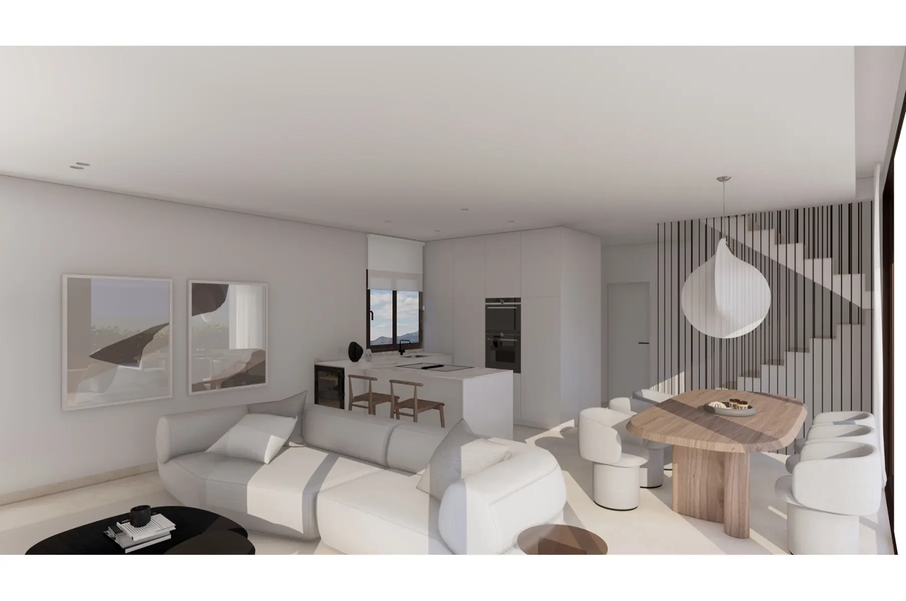 Chaque villa est soigneusement agencée sur deux niveaux, comprenant trois chambres spacieuses et trois salles de bains raffinées, ainsi qu’un cabinet de toilette pour les invités. Le rez-de-chaussée s’ouvre sur un espace de vie lumineux et décloisonné où le salon, la salle à manger et la cuisine contemporaine sont harmonieusement reliés. De grandes baies vitrées donnent directement sur une terrasse privée et une piscine, invitant la nature à l’intérieur et créant un espace idéal pour se détendre ou recevoir. À ce niveau se trouvent également une grande chambre double et une salle de bains moderne, parfaites pour accueillir des invités ou pour une vie intergénérationnelle.