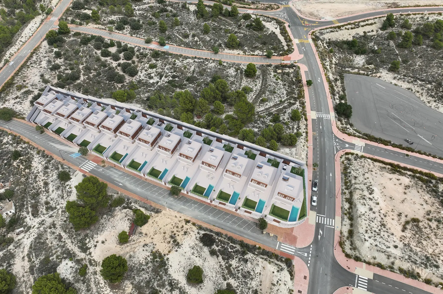 Conçues pour le confort et la qualité, ces villas sont équipées de la pré-installation de la climatisation, de volets roulants électriques, d’appareils électroménagers et de jardins entièrement aménagés. Une piscine privée est incluse en standard, et des options de personnalisation sont disponibles, notamment la possibilité d’ajouter des panneaux solaires ou un sous-sol selon l’avancement des travaux.
