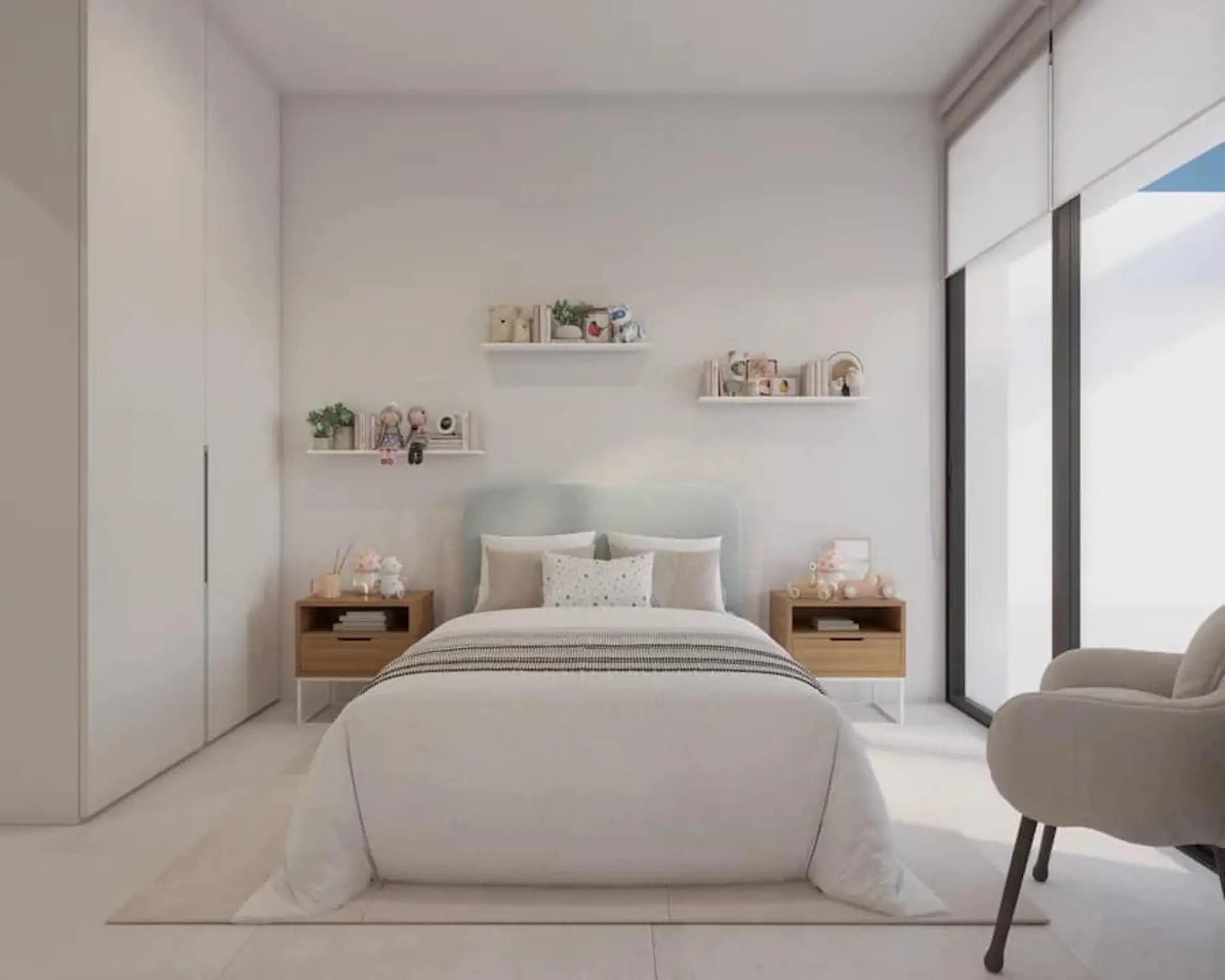 Situé sur des parcelles privées de 400 m2, chaque villa est conçue pour la vie en plein air. Beaucoup comprennent une piscine privée et sont en première ligne, et tous offrent accès à une grande piscine commune avec des espaces verts et une zone de jeux pour enfants. Certaines maisons sont équipées d’un garage, d’autres d’espaces de stationnement privés.
