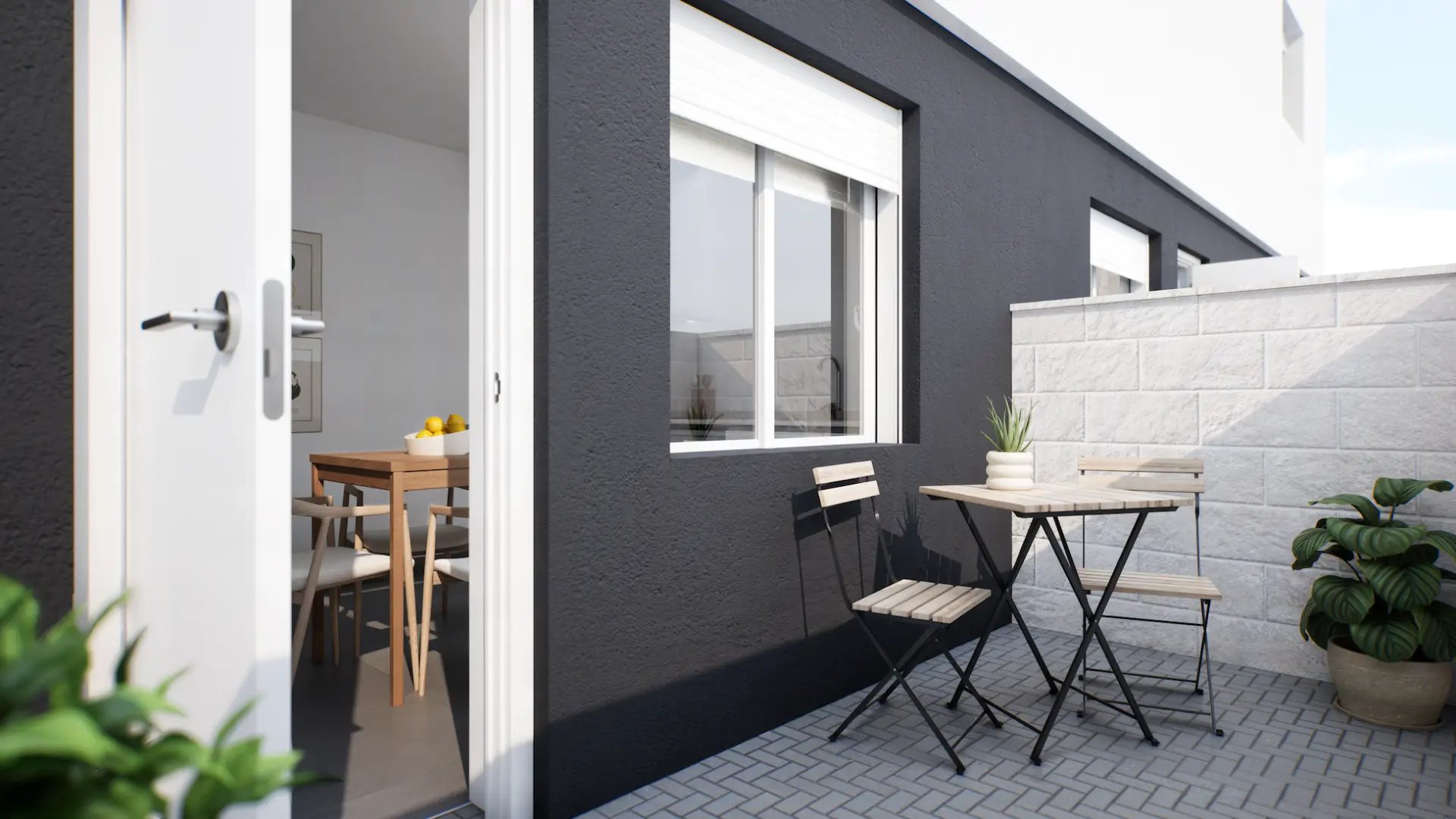 La maison de ville dispose d’un jardin privé de 25 m2, d’un patio arrière et d’un espace de stationnement de surface. Une piscine commune commune ajoute à l’attrait extérieur, offrant un endroit rafraîchissant pour se détendre ou passer du temps en famille et entre amis.