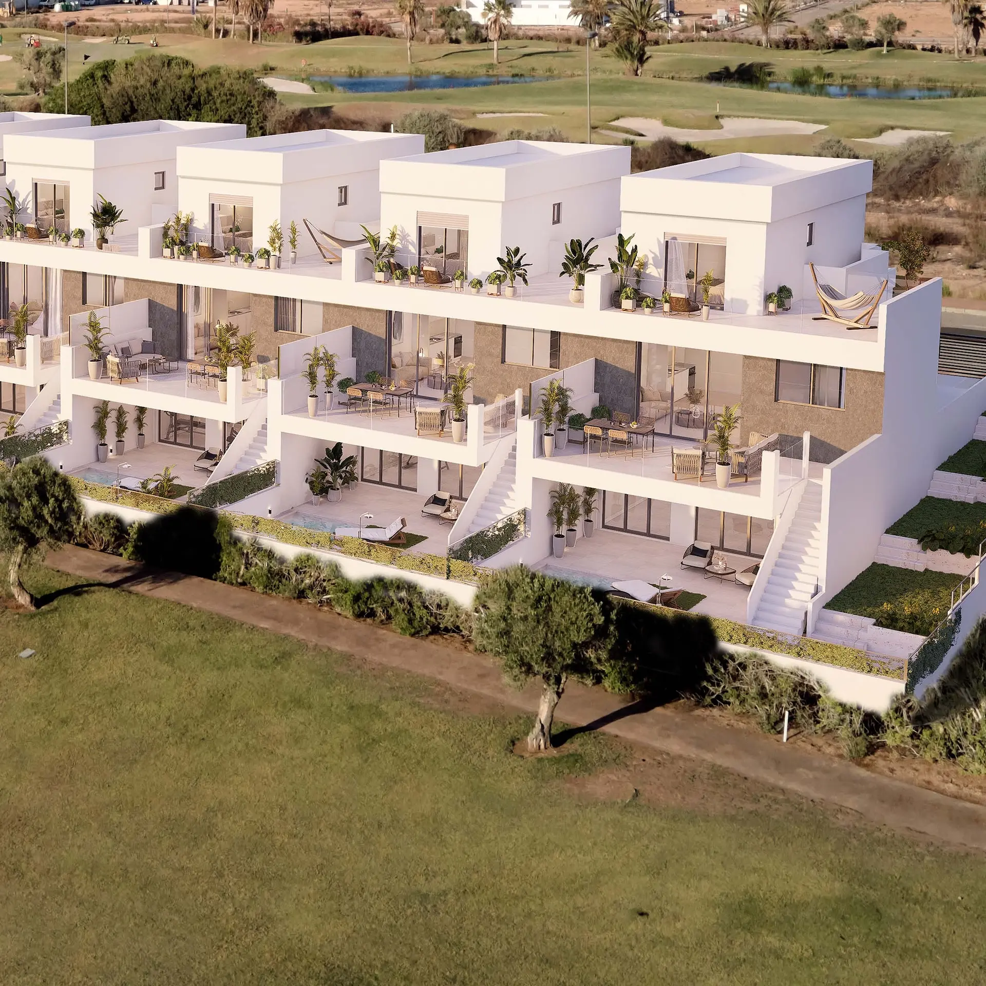 Dans le complexe exclusif La Serena Golf Resort à Los Alcázares, nous vous présentons un petit projet immobilier neuf comprenant au total 5 maisons mitoyennes. Situé à seulement 2 km de la paisible Mar Menor et entouré de nature et de golf, c’est un endroit idéal pour profiter toute l’année.