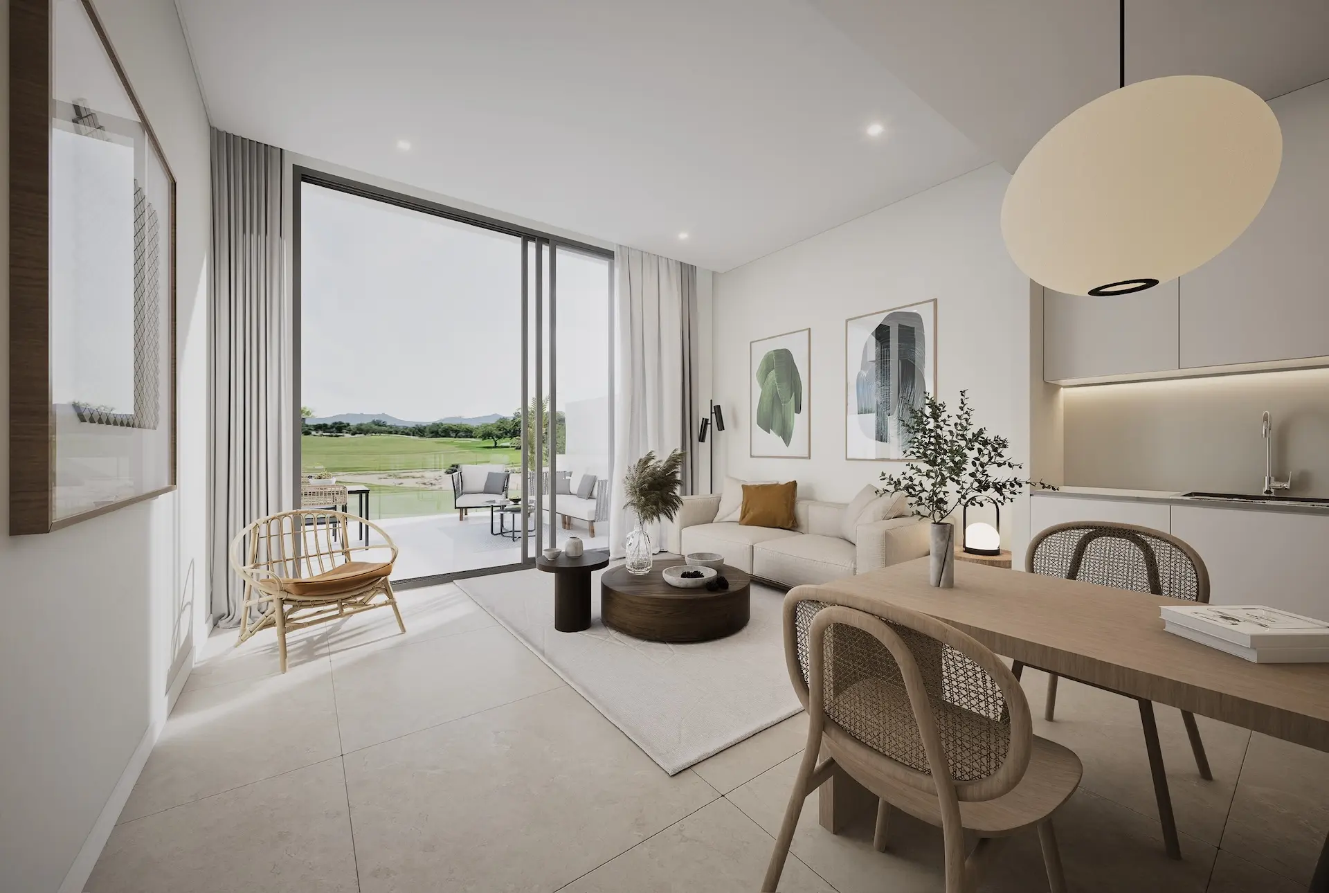 Les intérieurs lumineux et ouverts sont finis avec des matériaux de haute qualité et allient confort et fonctionnalité. De grandes baies vitrées coulissantes assurent une transition naturelle entre le salon et les terrasses et le jardin. Depuis les différents niveaux, vous pouvez profiter d’une vue magnifique sur le terrain de golf.