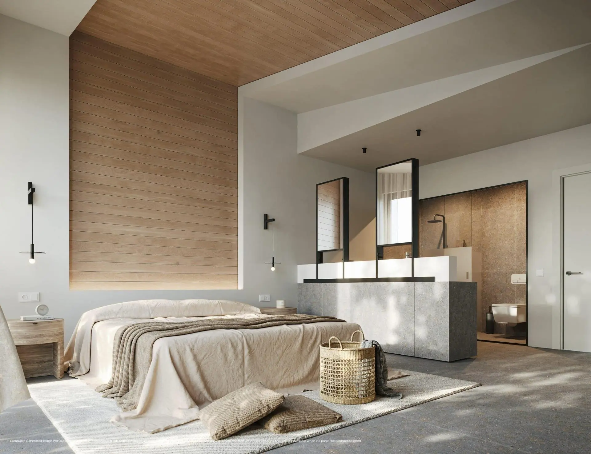 La villa dispose de 3 chambres et a été conçue pour optimiser l’espace, la lumière et le confort de vie. L’espace de vie ouvert constitue le cœur de la maison et relie le salon, la salle à manger et la cuisine en un ensemble élégant. De grandes baies vitrées laissent entrer une lumière naturelle abondante et renforcent la sensation d’ouverture et de liberté. Un escalier sculptural, conçu comme un objet d’art architectural, relie les étages et confère à la maison un aspect exclusif et artistique. Chaque pièce est agencée de manière réfléchie, dans un souci de confort, d’intimité et de qualité de vie au quotidien.