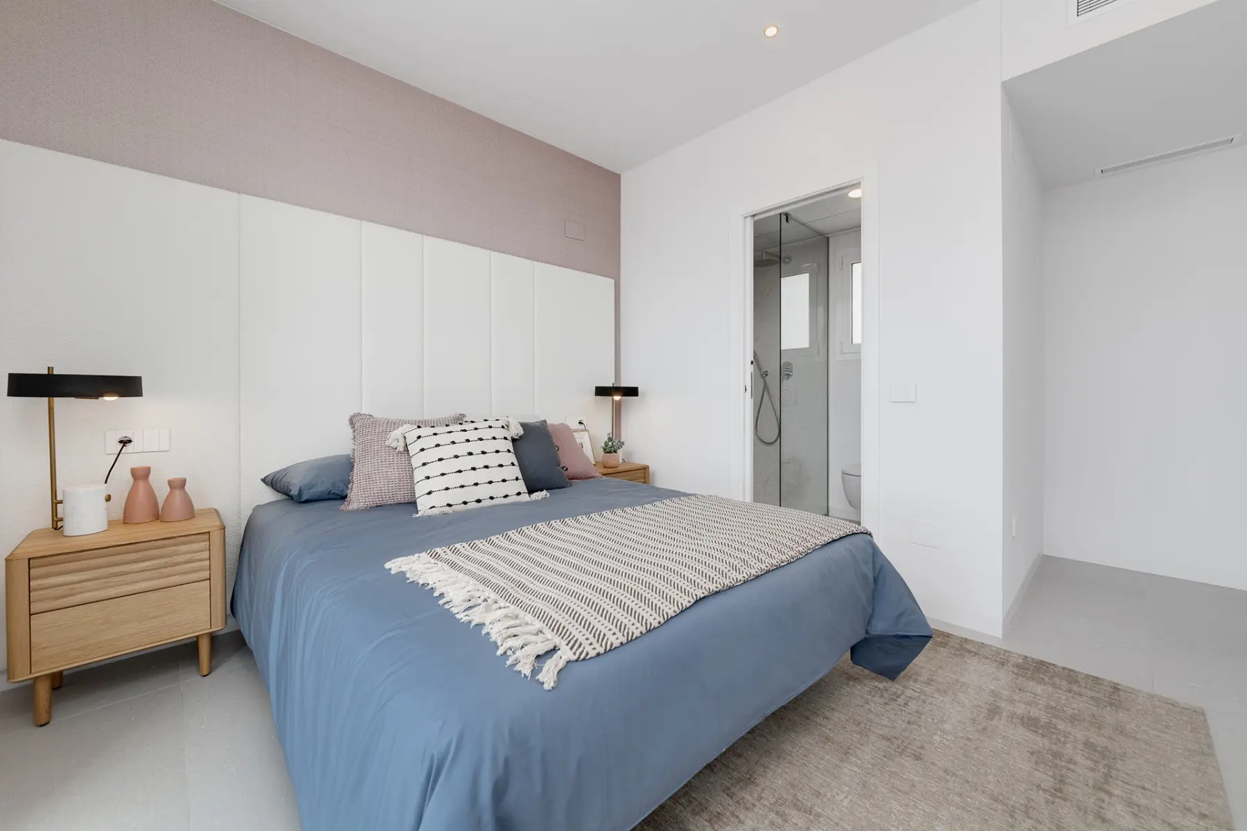 Les villas sont construites sur de grands terrains d’environ 500 m² et offrent une surface habitable de 119 m². Elles se composent de 2 étages et d’un vaste solarium avec vue panoramique. À l’intérieur, vous trouverez 3 chambres avec placards intégrés, 3 salles de bains (dont 2 en suite), une cuisine ouverte, un séjour lumineux et une buanderie pratique.