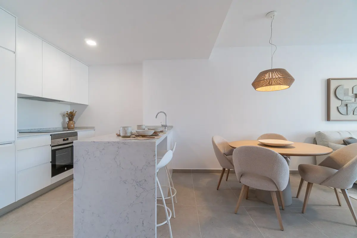 Choisissez l’appartement qui correspond à votre style de vie : 2, 3 ou 4 chambres et 2 ou 3 salles de bains. Les logements du rez-de-chaussée offrent de vastes terrasses, idéales pour dîner en plein air. Les appartements aux étages intermédiaires disposent de balcons accueillants, tandis que les penthouses bénéficient d’un solarium privé avec vue panoramique sur la côte. Chaque détail de l’intérieur est conçu pour un confort moderne, avec des espaces de vie ouverts, des matériaux de haute qualité et des agencements intelligents.