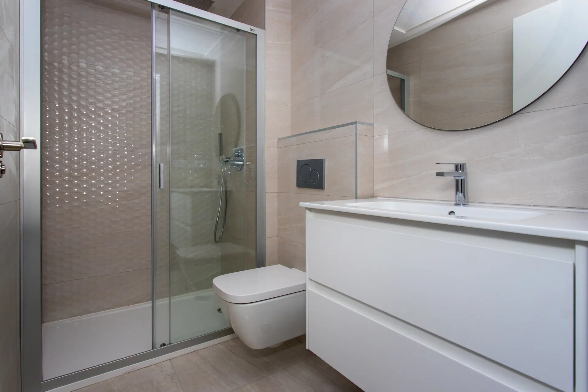 Les appartements sont disponibles avec 2 ou 3 chambres et 2 salles de bains, répartis dans trois bâtiments élégants de cinq étages. L’agencement ouvert avec salon, salle à manger et cuisine entièrement équipée crée une atmosphère lumineuse et spacieuse. De grandes baies vitrées s’ouvrent sur la vaste terrasse, où vous pourrez profiter chaque jour de la vue sur la mer. La chambre principale dispose d’une salle de bains privative et d’un accès direct à la terrasse.
