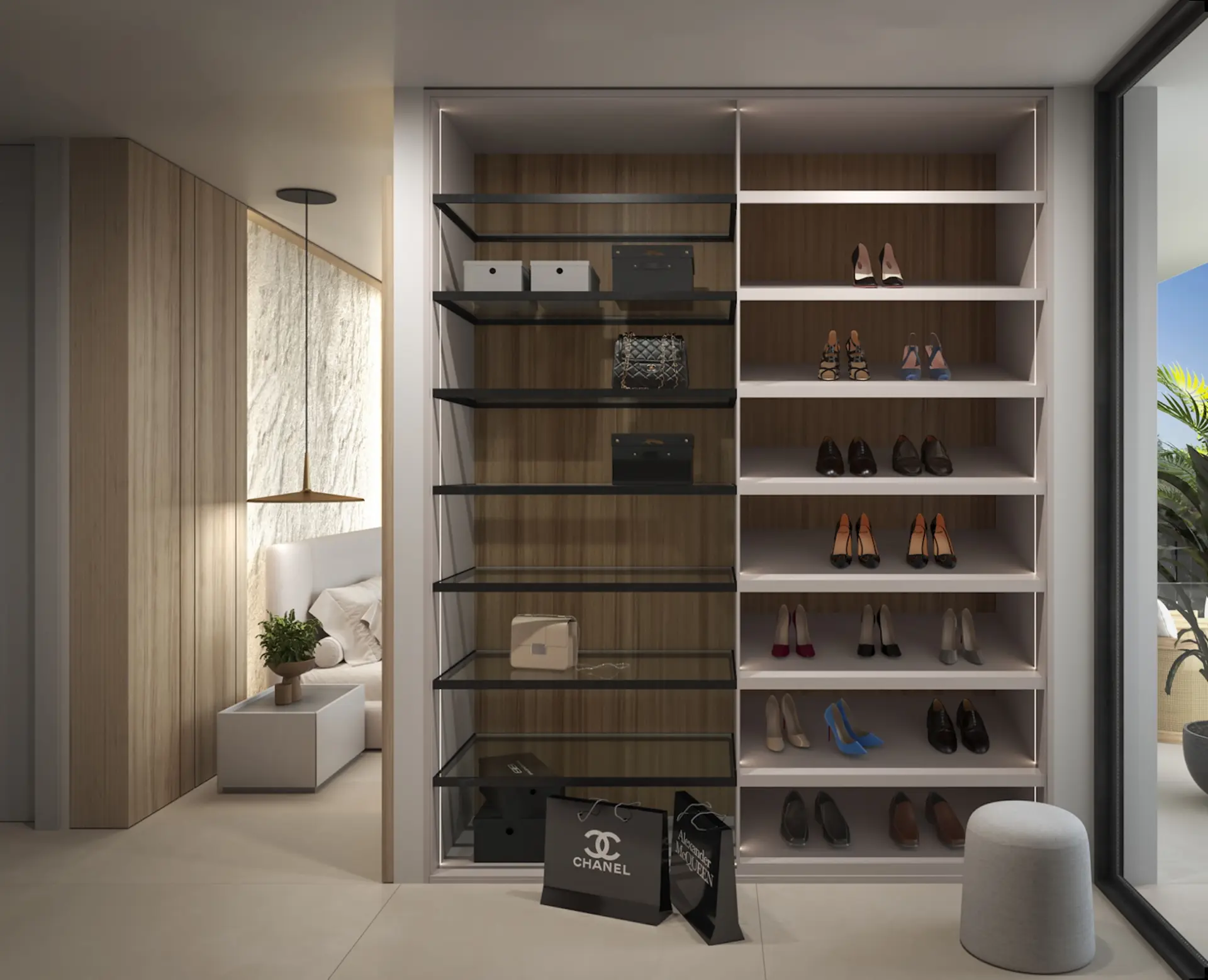 Binnen zijn de villa’s een showcase van verfijnd design en uitzonderlijk vakmanschap. De uitgestrekte open woonruimtes bieden een naadloze stroom, ideaal voor zowel vermakelijk als ontspanning. De master bedroom is een waar heiligdom, met een ruime kleedkamer met LED-verlichting, evenals ruime opslagruimte met glazen planken en lade-eenheden. Elk van de extra slaapkamers beschikt over stijlvolle DICA-kasten, bedachtzaam ontworpen om opslag en functionaliteit te maximaliseren. De keuken BULTHAUP is een droom van een chef-kok, met top-of-the-line SIEMENS STUDIOLINE-apparaten, die zorgen voor duurzaamheid en stijl bij elke maaltijdbereiding. Deze ruimte, volledig uitgerust met een modern domoticasysteem, is ontworpen om elk aspect van uw dagelijks leven zo handig en luxe mogelijk te maken.