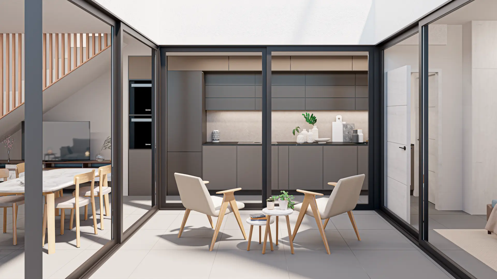 Elke woning beschikt over een eigen privé zwembad, compleet met LED-verlichting, roestvrijstalen douche, en een volledig zuiveringssysteem dat geschikt is voor afkoeling tijdens de lange zomermaanden. Het dak solarium biedt extra buiten leefruimte, perfect om te zonnebaden, te eten of te genieten van de zeebries. Een groot terras en interieur patio completeren de buitenervaring, waardoor u meerdere zones om te ontspannen of te vermaken in volledige privacy.