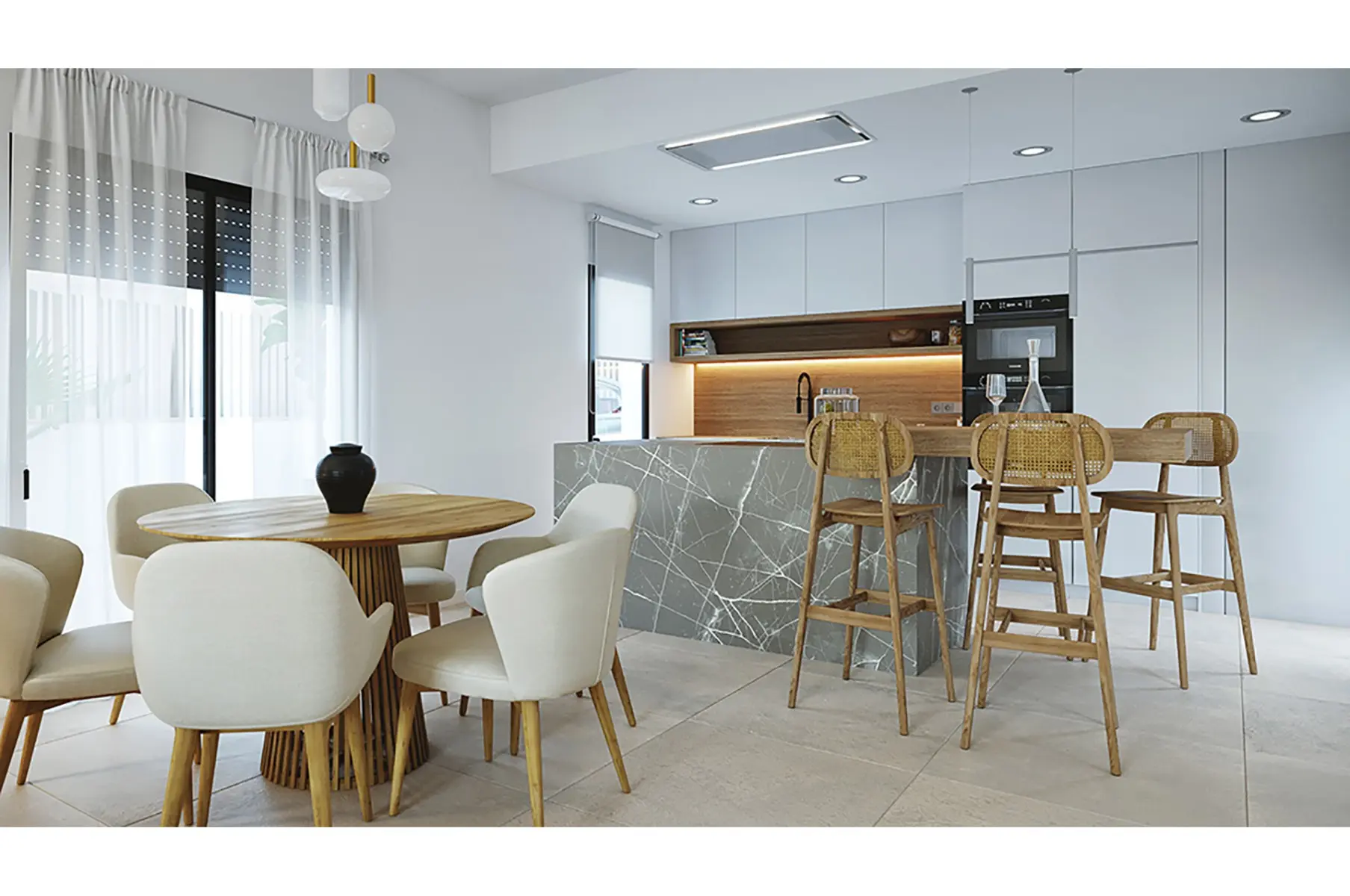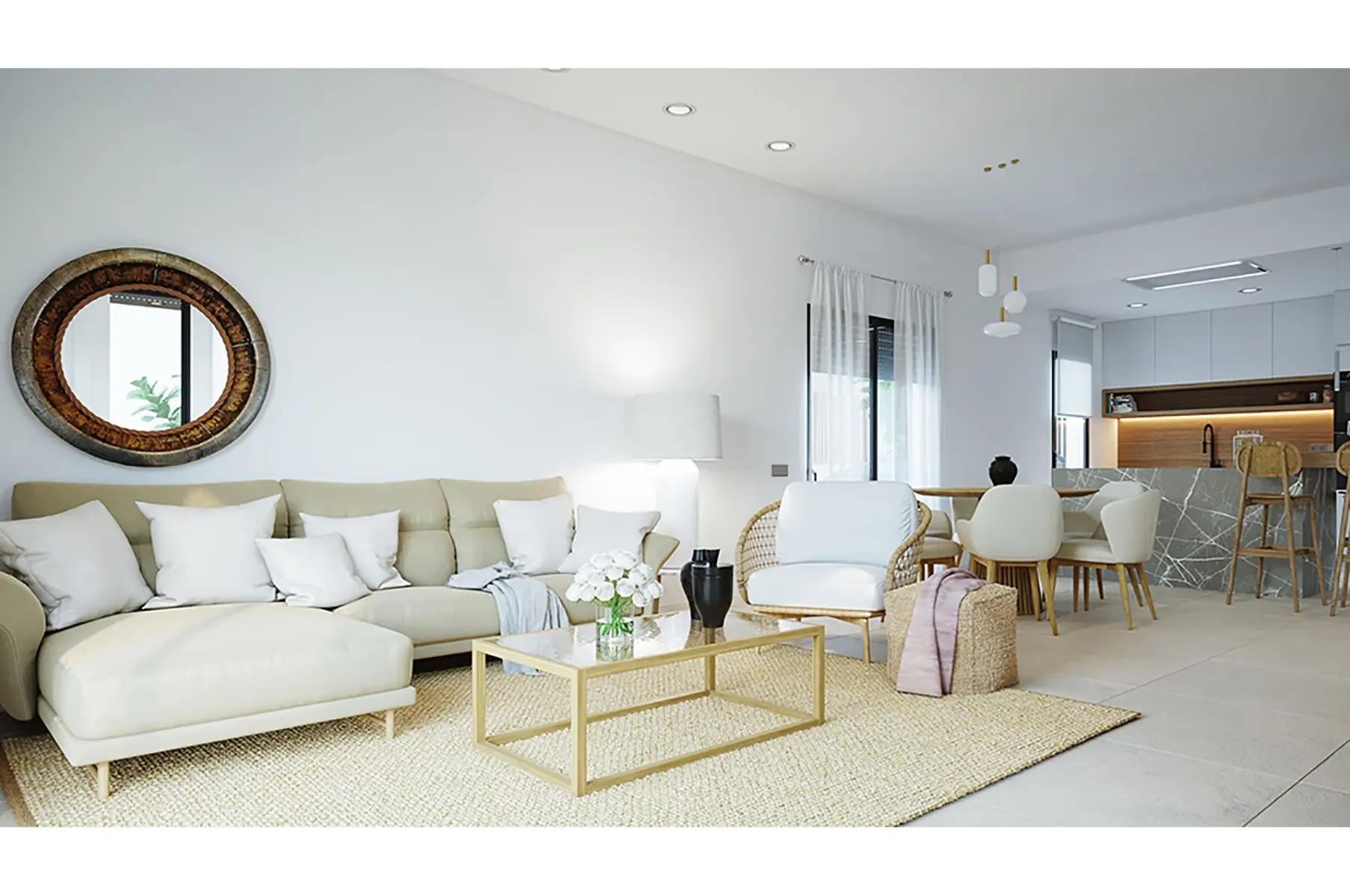 De villa’s zijn gebouwd met hoogwaardige materialen en combineren strakke witte lijnen met natuurlijke accenten voor een warme, moderne uitstraling. Standaard inbegrepen zijn pre-installatie airconditioning, keukenapparatuur, vloerverwarming in de badkamers, LED-verlichting, wasruimte, privézwembad, tuin en parkeergelegenheid op het perceel.