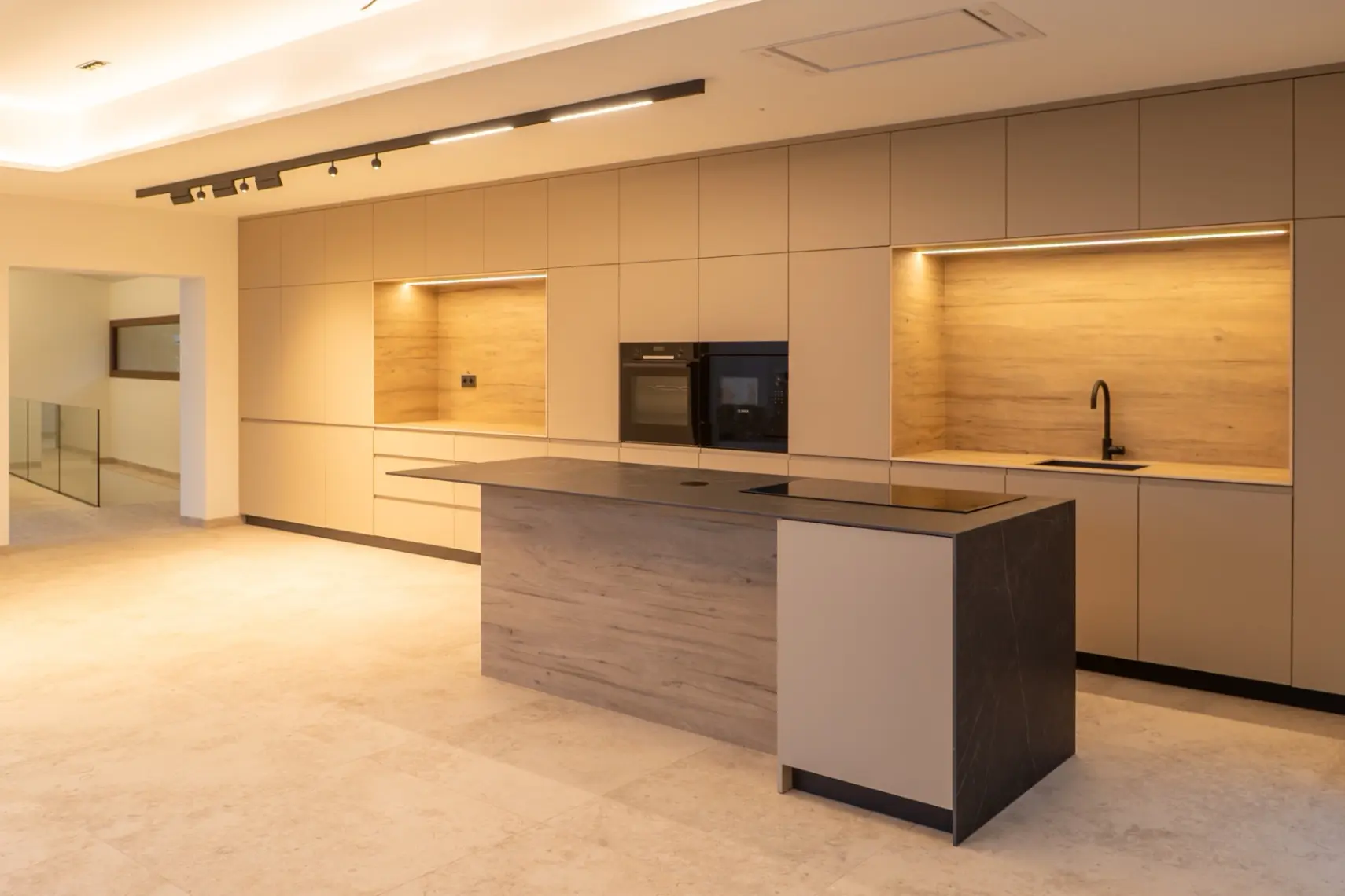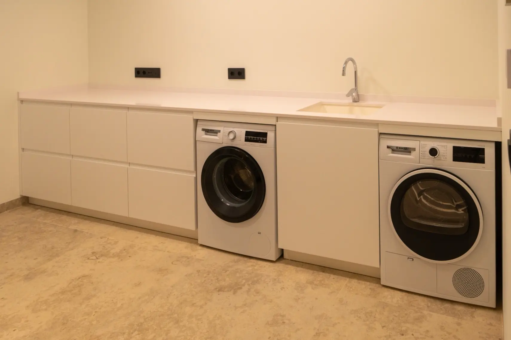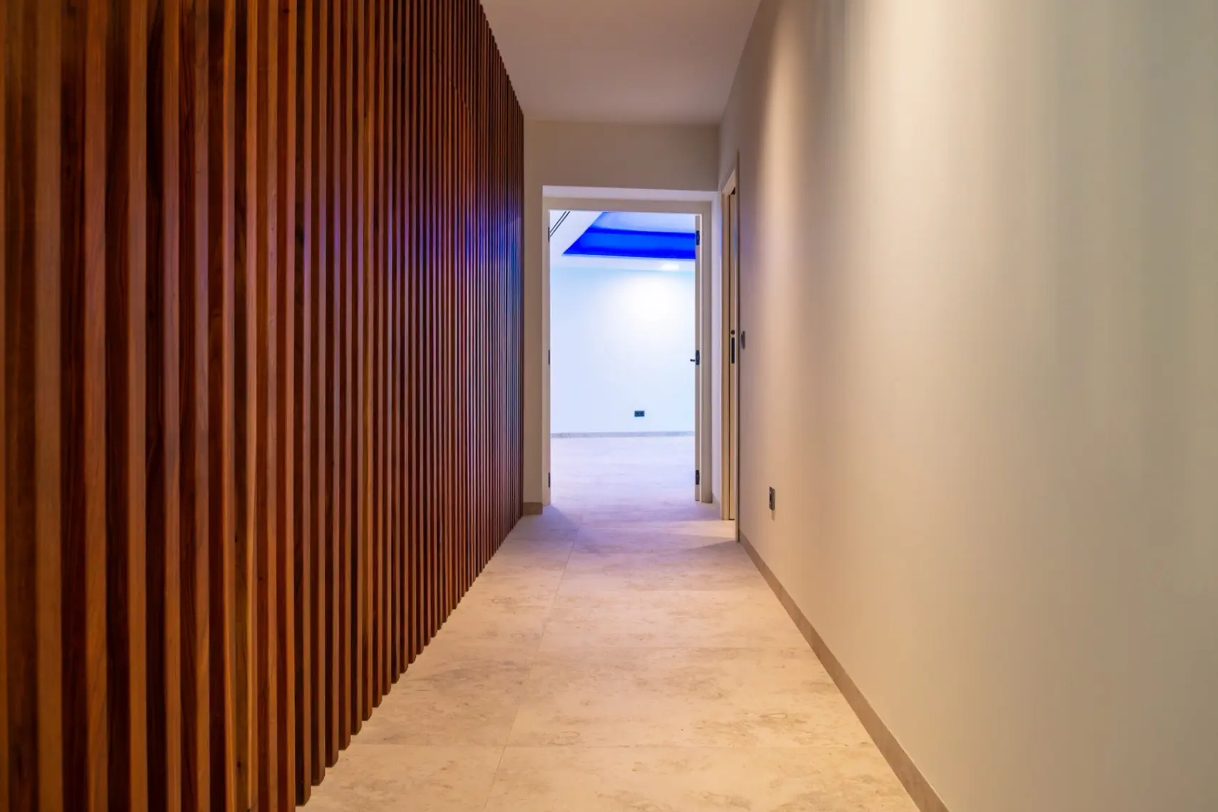 De villa beschikt over 4 ruime slaapkamers en 3 badkamers, verdeeld over twee verdiepingen. De lichte woon- en eetkamer sluit naadloos aan op een luxe keuken met kookeiland en plafondhoge kasten. Op de begane grond vindt u een gastensuite met inloopkast, een dubbele garage, gastentoilet en een complete wellnessruimte. Boven bevinden zich de overige slaapkamers, waarvan één met eigen badkamer en directe toegang tot het zwembadterras.