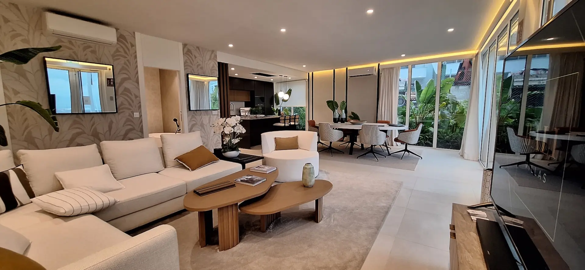 Binnen biedt elke woning een ruime open indeling met grote ramen die de hele dag natuurlijk licht binnenlaten. Elke villa beschikt over 3 royale slaapkamers, 3 stijlvolle badkamers en hoogwaardige afwerkingen in het hele huis. Het ontwerp is modern maar warm — gebouwd voor dagelijks gemak met een vleugje elegantie.