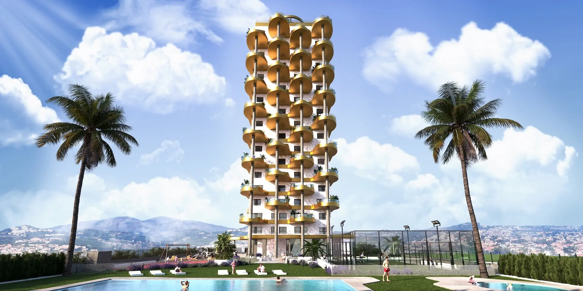Stap buiten op je terras of geniet van de prachtig ontworpen gemeenschappelijke ruimtes. Van een sprankelend zwembad tot een fitnessruimte, paddle-tennisbaan, kinderspeelplaats en mediterrane tuinen – elke hoek is ontworpen voor ontspanning en vrije tijd.