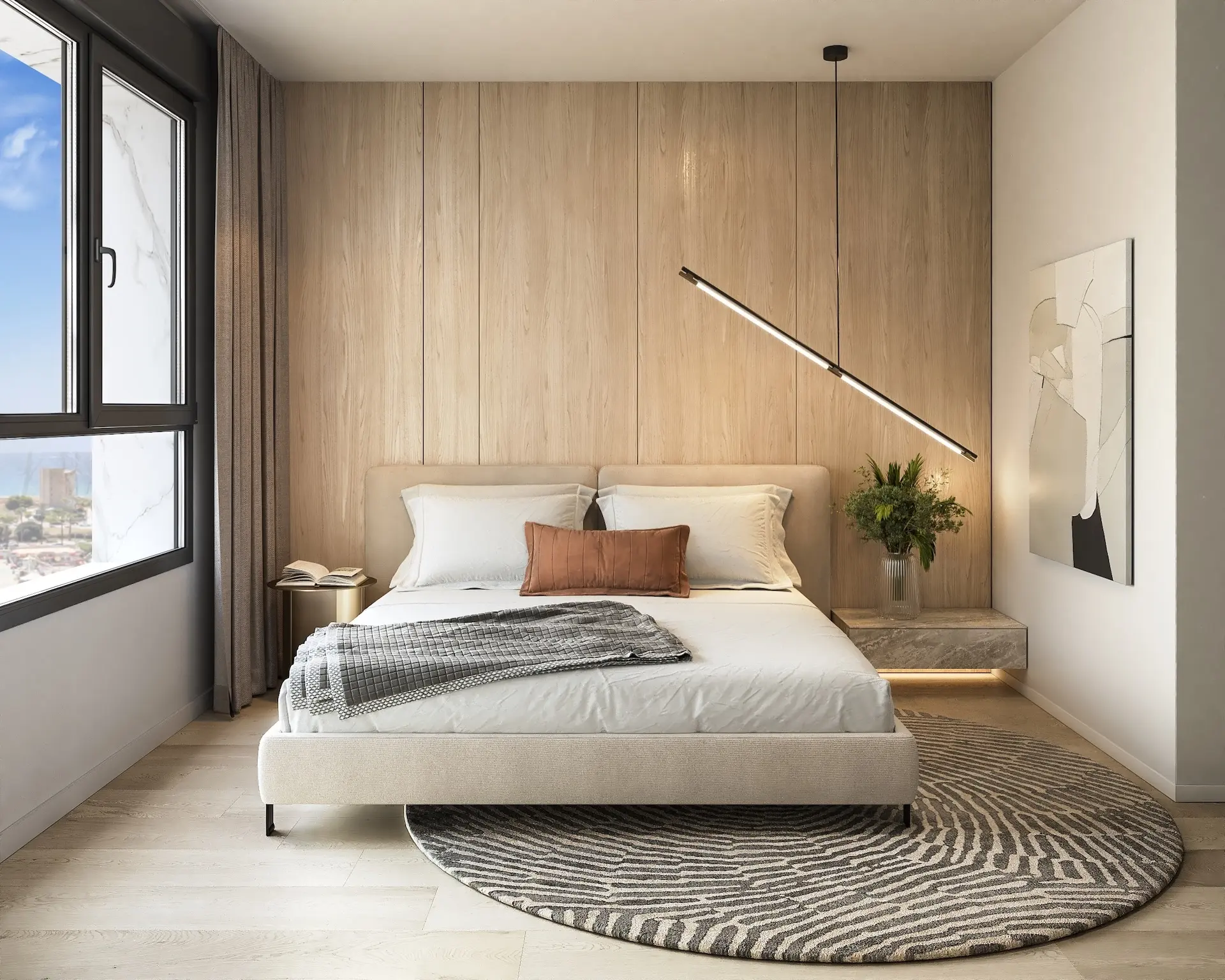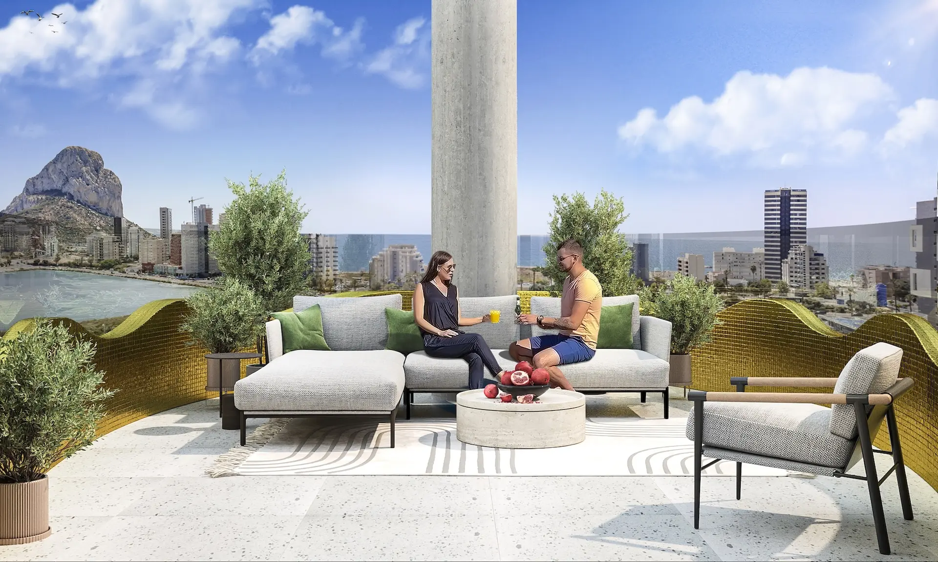 Elk appartement beschikt over 3 ruime slaapkamers en 2 stijlvolle badkamers, die zorgvuldig zijn ingedeeld om maximaal comfort en natuurlijk licht te bieden. De open woonruimte loopt naadloos over in een groot terras met prachtig uitzicht op zee. De hoogwaardige afwerking omvat airconditioning met warm en koud water, een volledig uitgeruste designkeuken en hoogwaardige apparatuur. Een privégarage en berging zijn ook inbegrepen.