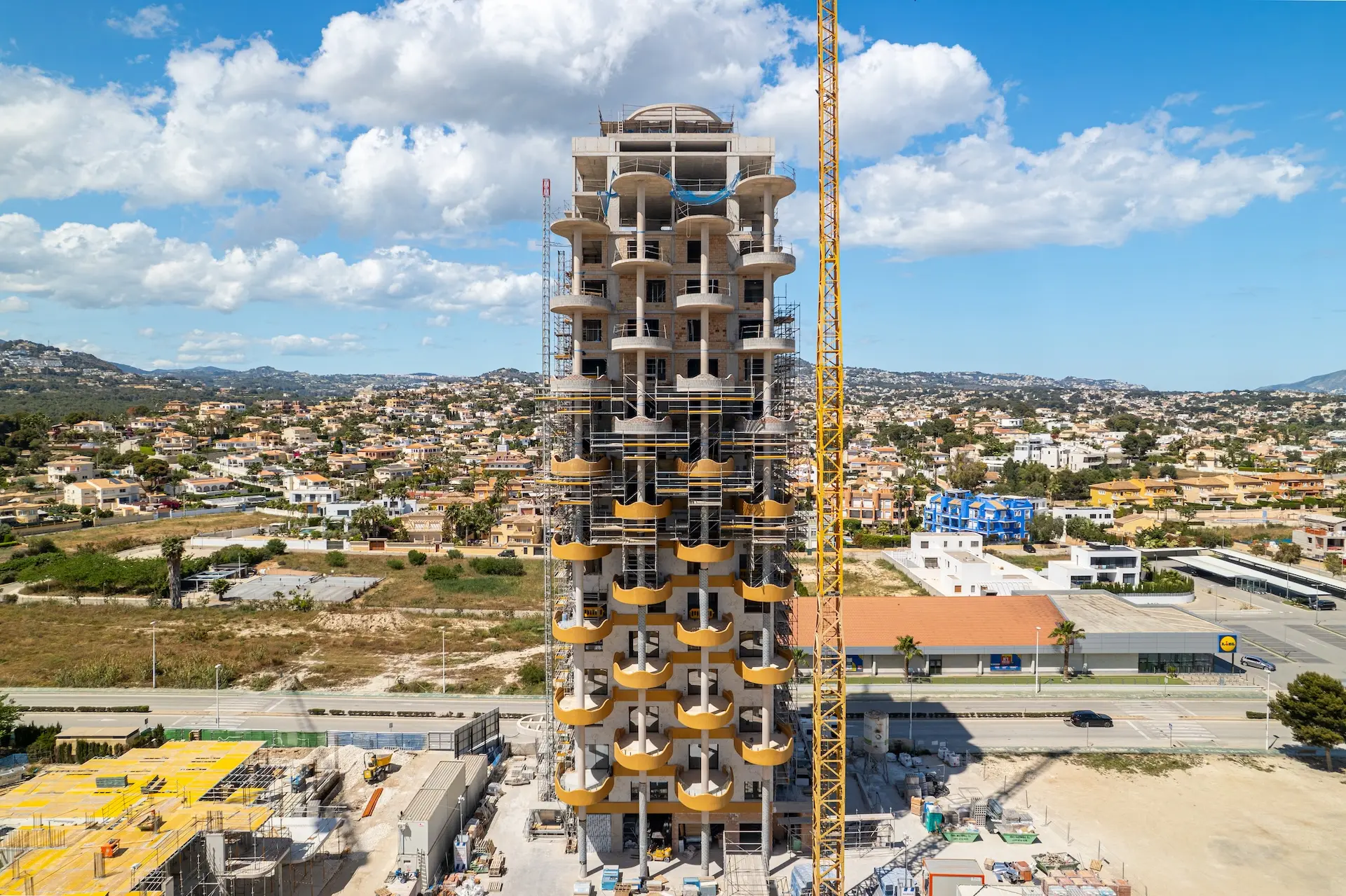 Dit project valt ook op door zijn unieke architectuur, met gouden, bladvormige terrassen die een opvallend, op bomen geïnspireerd ontwerp vormen. Een echt monument in wording.