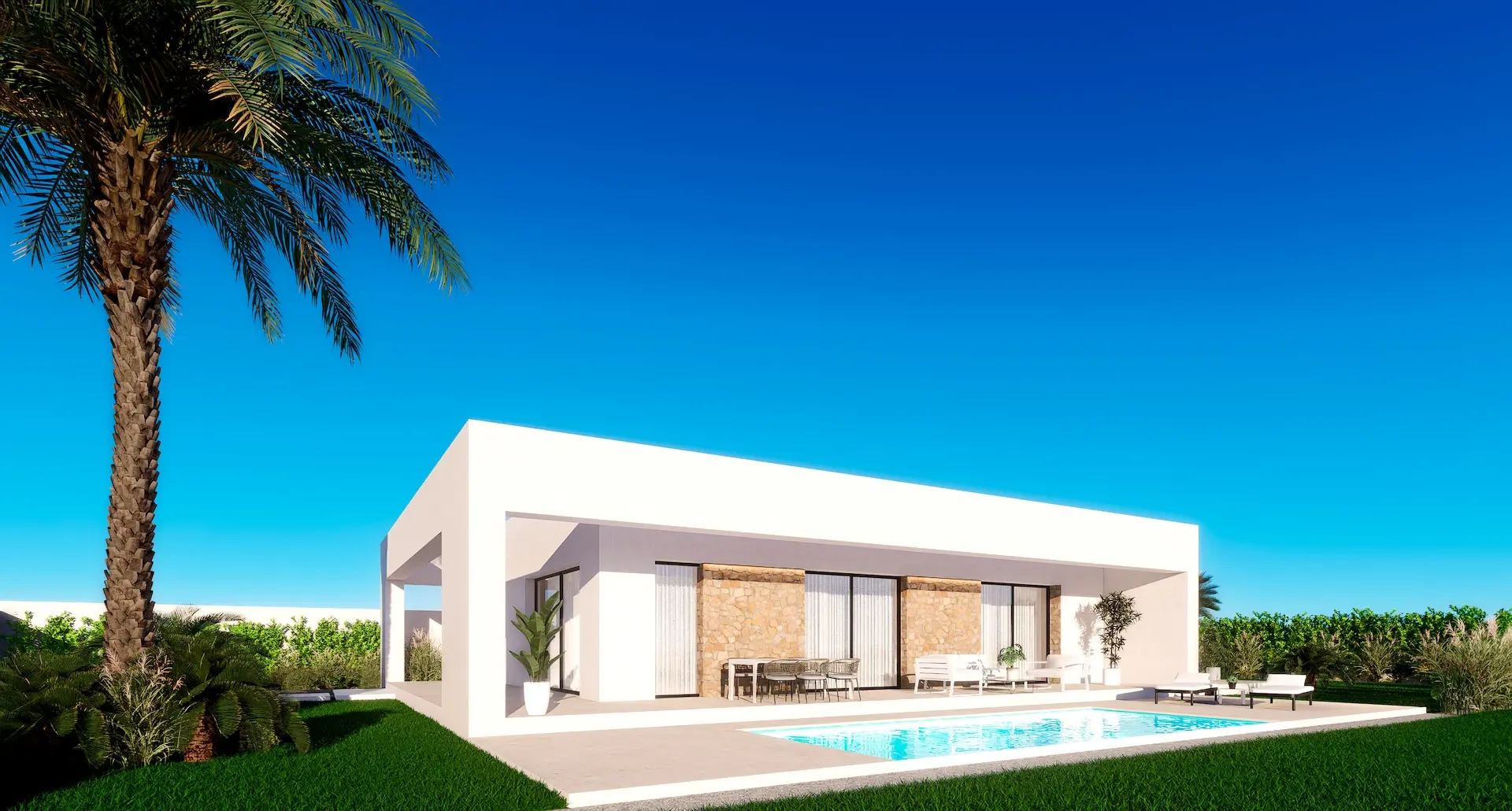 Elke villa heeft een innovatieve gelijkvloerse indeling die functionaliteit en elegantie combineert. Het interieur bestaat uit een open woon- en eetruimte met veel daglicht, aangevuld met een ultramoderne keuken met eersteklas afwerking en geavanceerde apparatuur. Met drie ruime slaapkamers en drie luxe badkamers zijn deze woningen ontworpen om privacy en comfort te bieden aan elke bewoner.