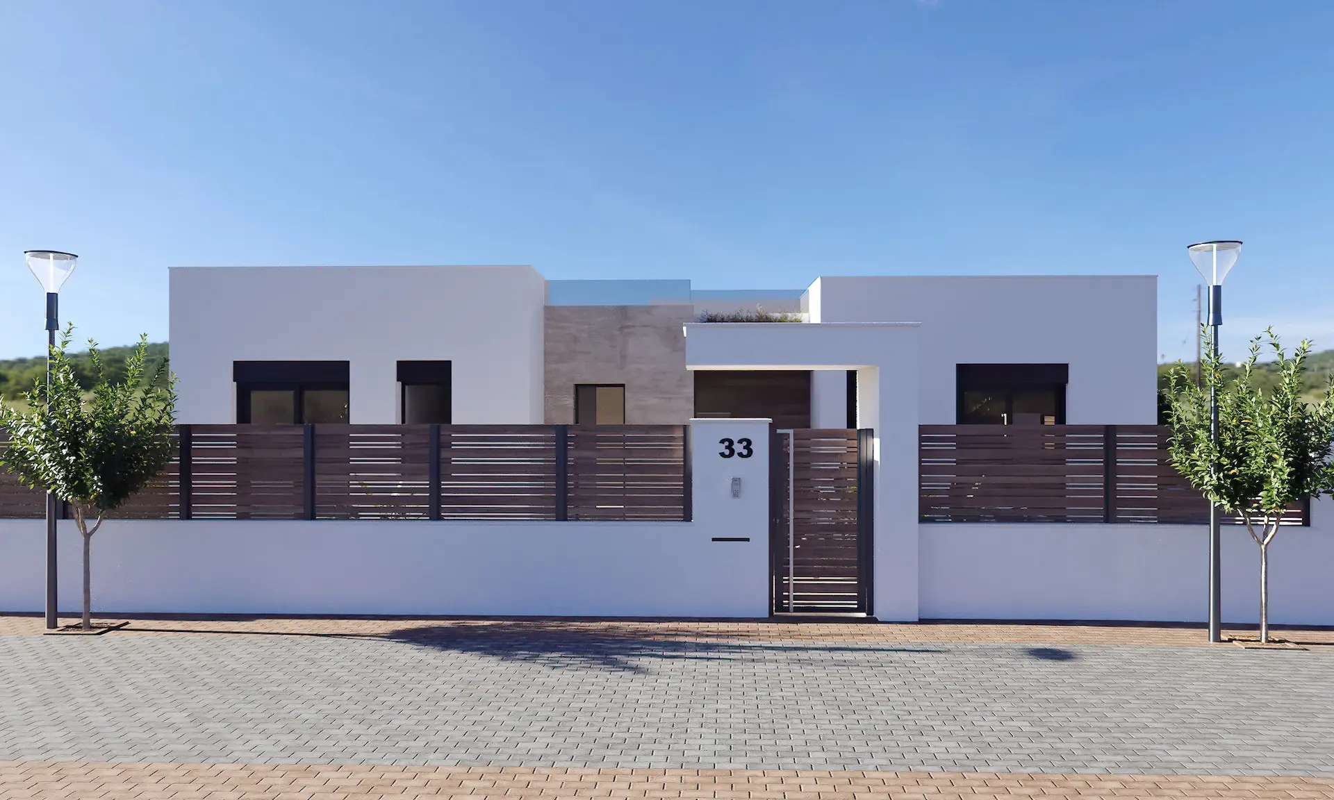 De villa is gelijkvloers ontworpen en biedt 3 slaapkamers en 2 badkamers, met een lichte open leefruimte die direct aansluit op het terras en het privézwembad. Het ruime perceel vanaf 300 m² zorgt voor optimale privacy, terwijl het grote solarium op het dak uitkijkt over de golfbaan en uitnodigt tot ontspannen in de zon. De hoogwaardige afwerking is zichtbaar in elk detail, van de thermisch onderbroken buitenkozijnen tot het aerothermische systeem voor warm water en de voorbereide installatie voor airconditioning. Dankzij de automatische toegangspoort, het irrigatiesysteem met eigen watertank en de doordachte indeling geniet u van comfort het hele jaar door.