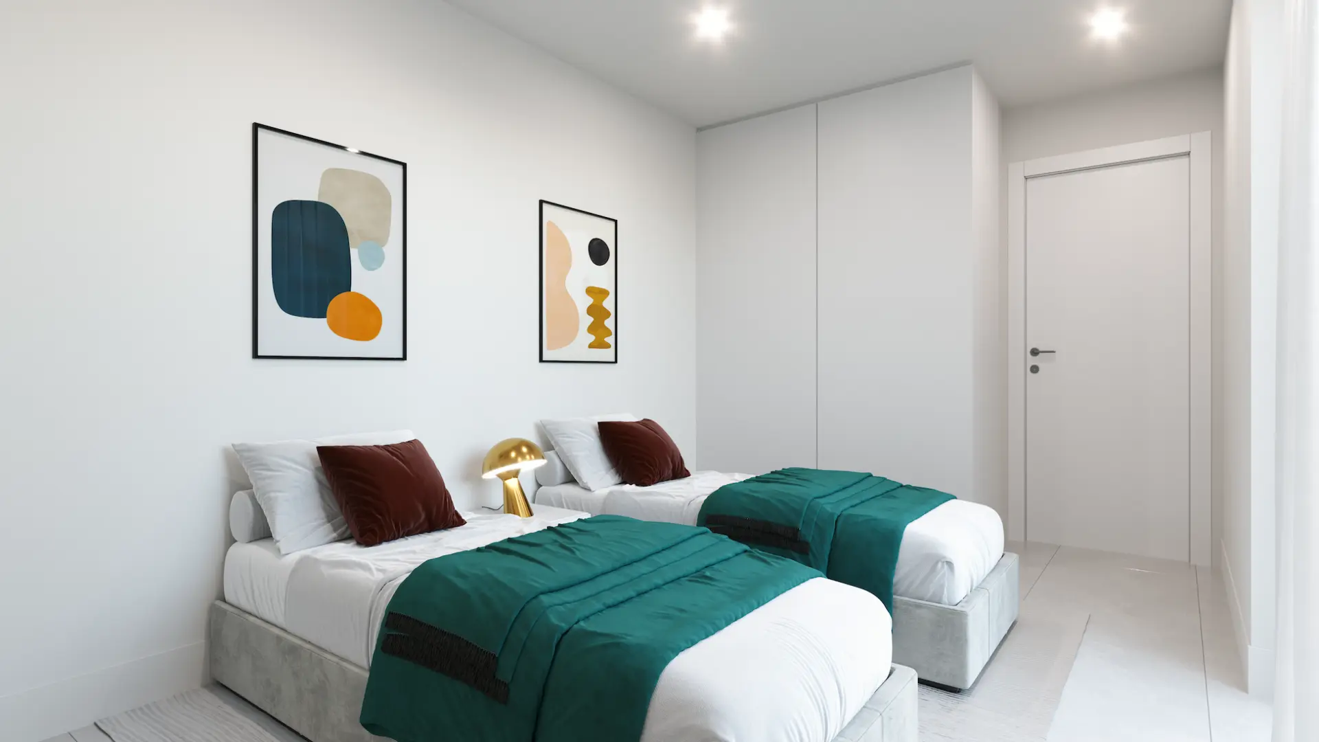 Elke gelijkvloerse villa beschikt over drie ruime slaapkamers en twee prachtig afgewerkte badkamers, ideaal voor gezinnen of voor wie ruimte en licht waardeert. De open woonruimte wordt versterkt door een opvallend plafond met dubbele hoogte, wat zorgt voor een lichte en luchtige sfeer. Een strakke, volledig uitgeruste keuken met moderne zwarte apparatuur biedt zowel functionaliteit als stijl, terwijl inbouwkasten, een pre-installatie voor kanaalairconditioning en energiezuinige systemen dagelijks comfort en gemak garanderen.