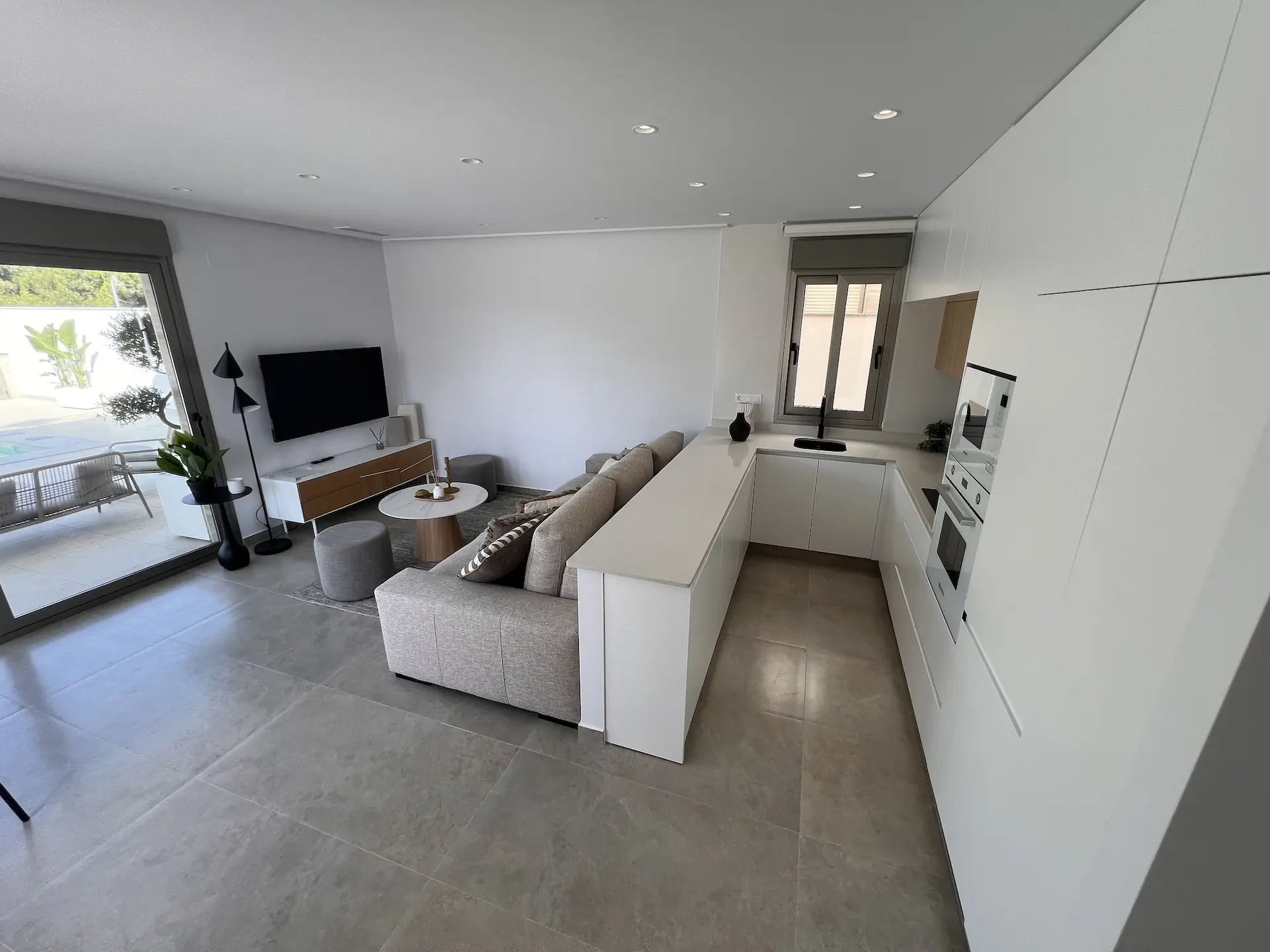 Ontdek deze moderne nieuwbouw villa in het Lo Romero Golf Resort, een rustige en groene omgeving vlak bij Pilar de la Horadada. Met uitzicht op de golfbaan en een strategische ligging tussen de Costa Blanca en de Costa Cálida is deze woning ideaal voor wie comfortabel wil wonen onder de Spaanse zon.