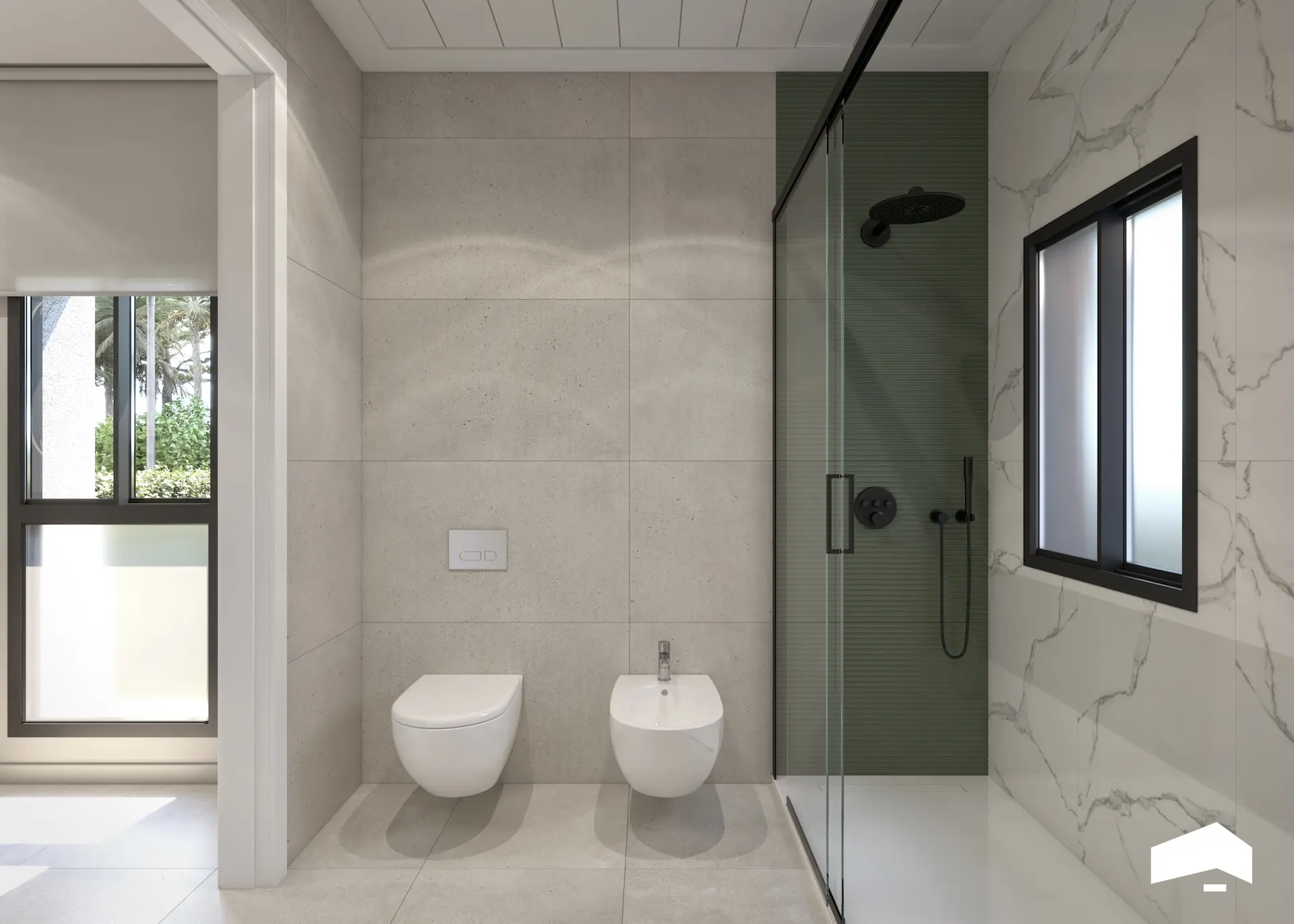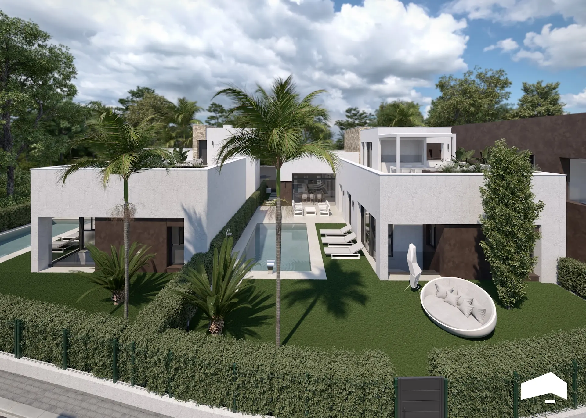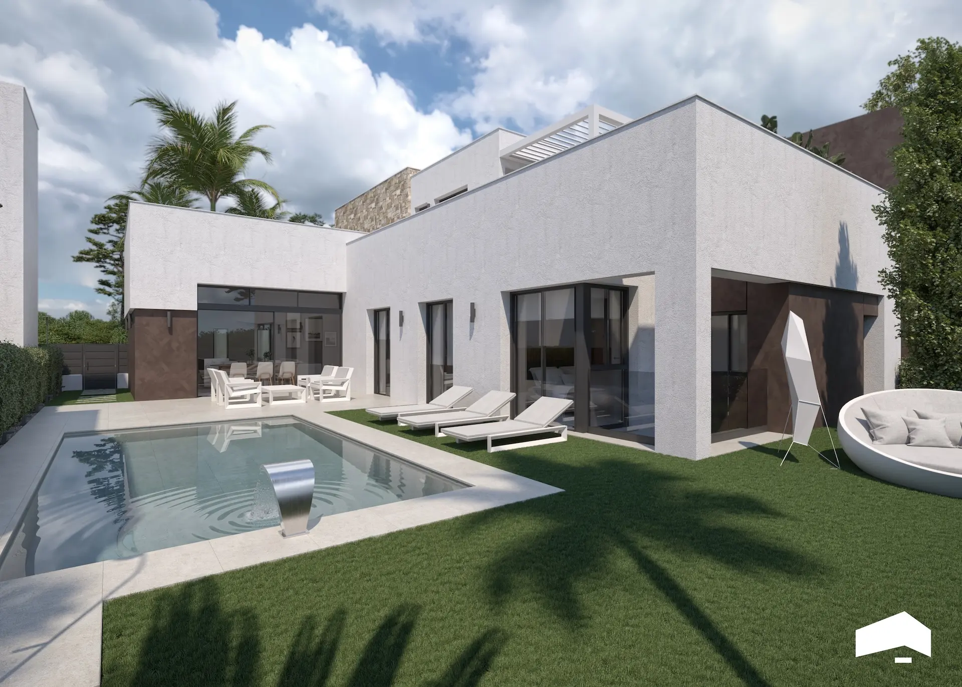 Deze moderne villa is gebouwd op één niveau en beschikt over 3 slaapkamers en 2 badkamers. De open L-vormige indeling creëert een naadloze overgang tussen binnen en buiten, terwijl grote ramen veel natuurlijk licht binnenlaten. Het dakterras is een echte highlight, compleet met zomerkeuken en voldoende ruimte om te ontspannen of gasten te ontvangen.