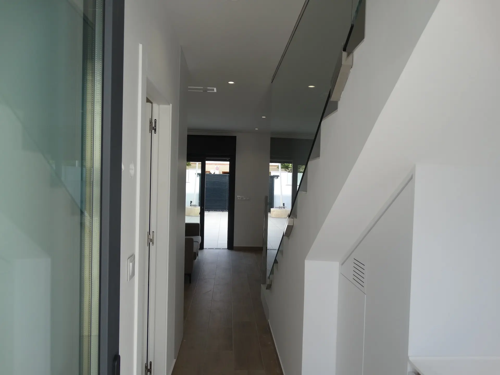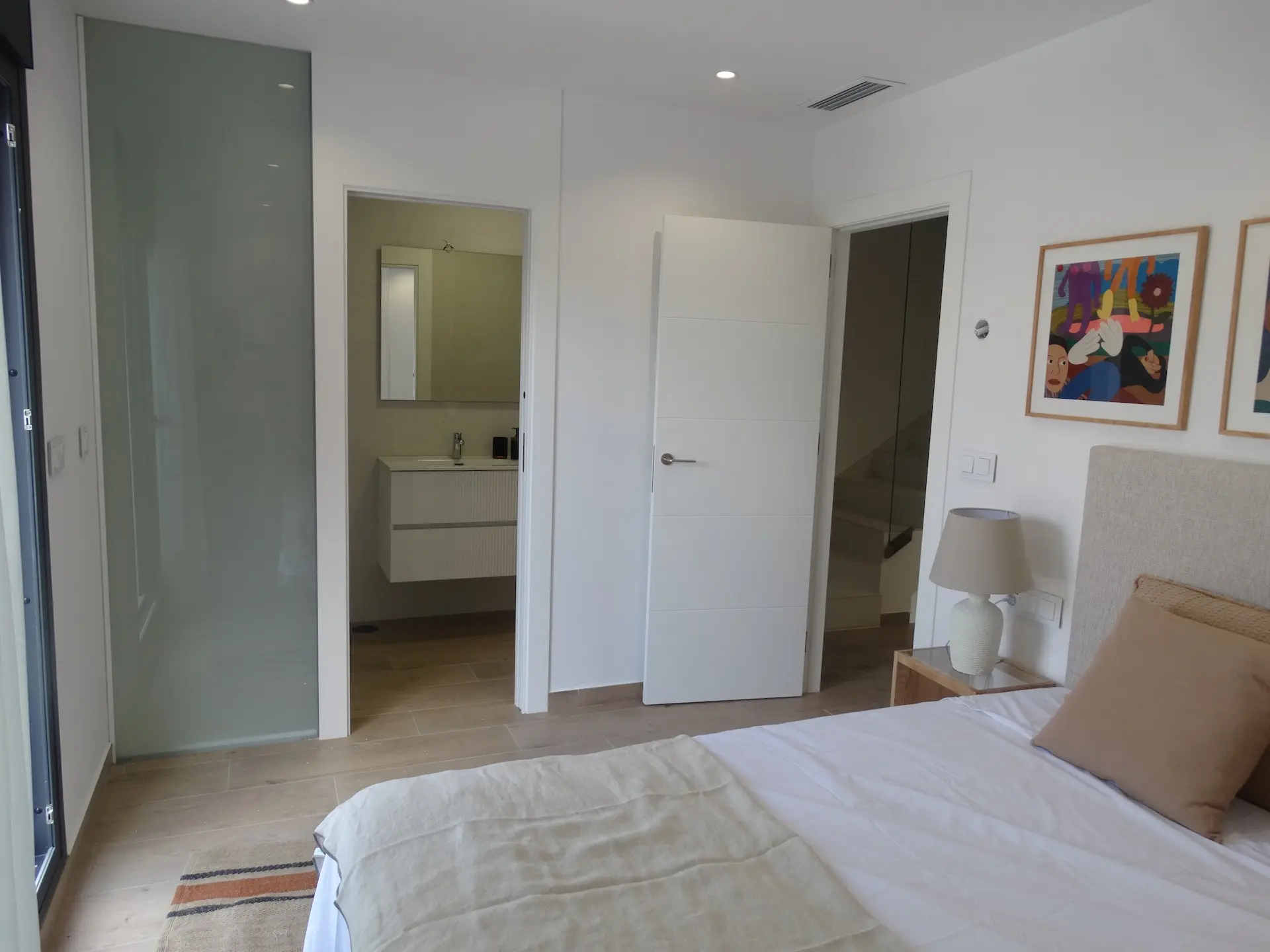 De villa bestaat uit 3 slaapkamers en 3 badkamers. De begane grond heeft een open indeling, bestaande uit de keuken, eethoek en woonkamer, met grote ramen die uitkomen op de terrassen. Op deze verdieping is ook een slaapkamer, met toegang tot een patio, een badkamer en een wasruimte. De 2 overige slaapkamers bevinden zich op de eerste verdieping, waaronder de hoofdslaapkamer met en-suite badkamer en toegang tot een terras met uitzicht op het zwembad. Het ruime solarium is bereikbaar via de interne trap, waar je kunt genieten van de zon en het mediterrane klimaat.