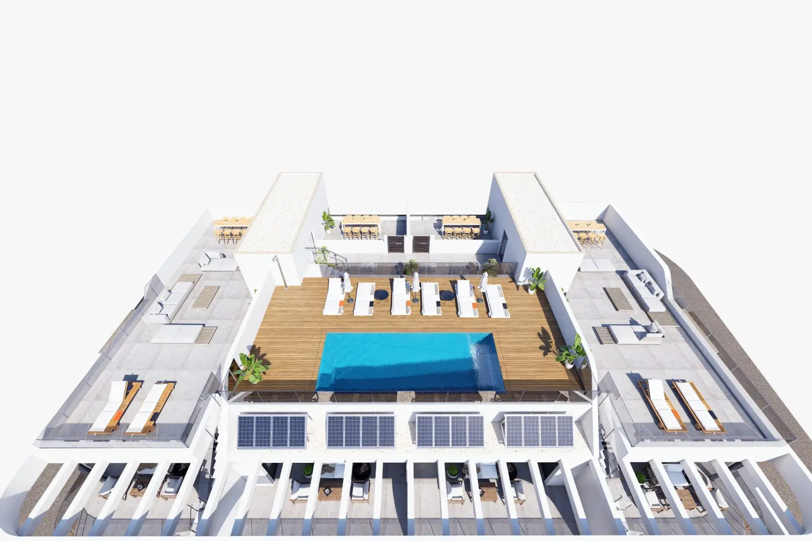 Enjoy a relaxed outdoor lifestyle with private terraces, gardens or solariums where you can enjoy the Mediterranean sun. The penthouse apartments have spacious solariums, ideal for outdoor dining and entertaining, while the ground floor properties have lush private gardens – a perfect retreat. The project also includes beautifully designed communal areas, with a sparkling swimming pool and landscaped spaces for residents to enjoy.
