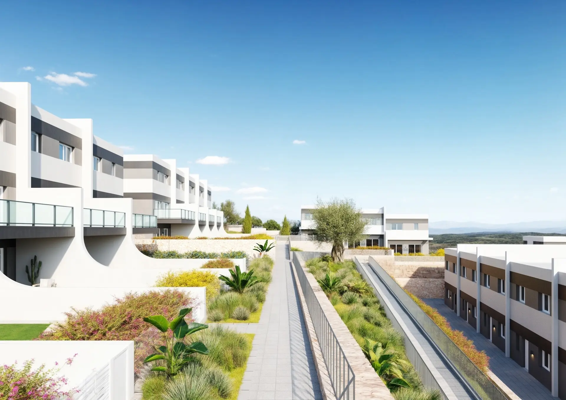 Outside, each property boasts a spacious terrace, perfect for enjoying the Mediterranean climate and the views of the complex’s natural surroundings all year round.