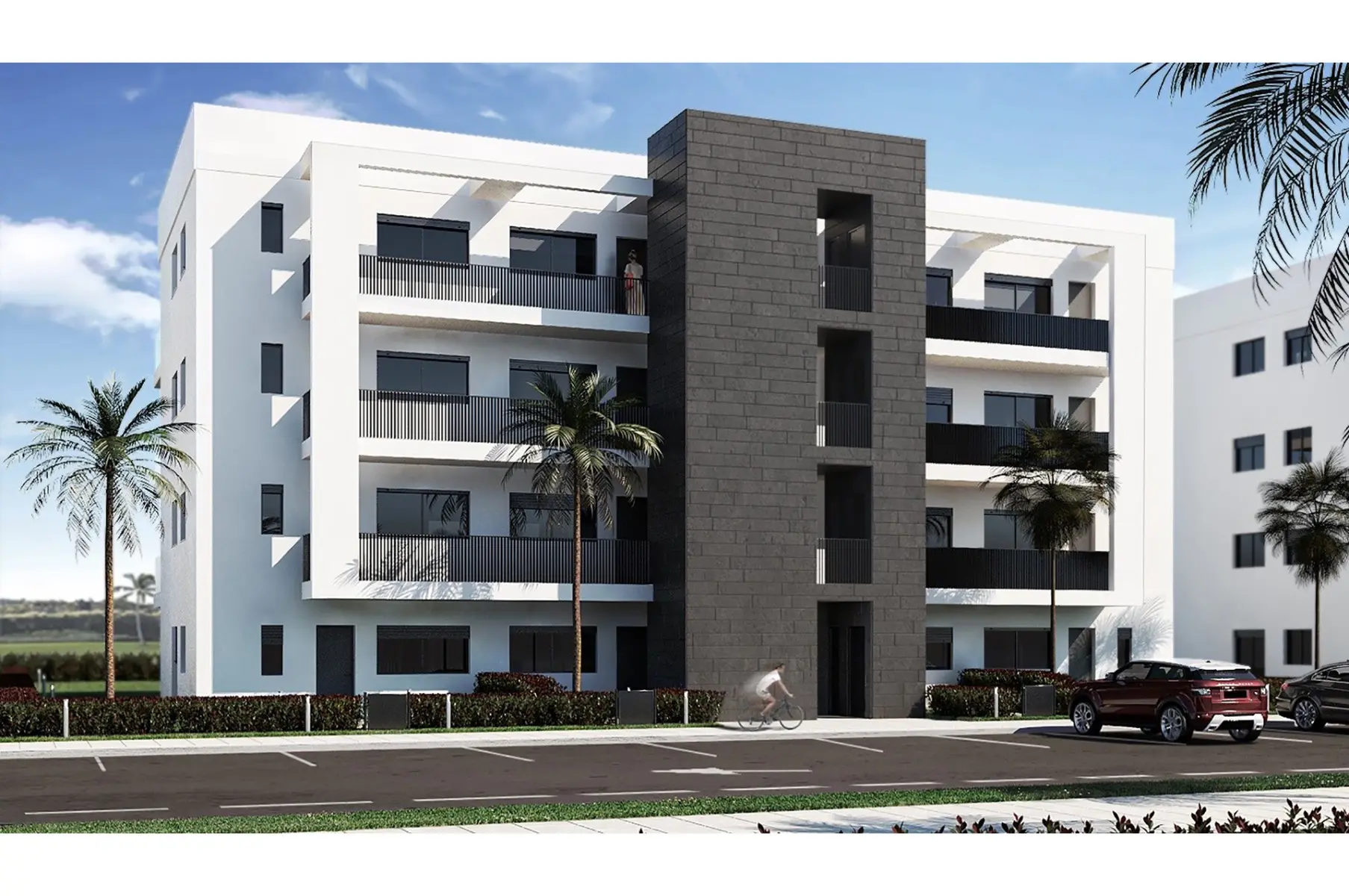 The apartments have a living area between 73.88 m² and 75.22 m², with an open-plan living-kitchen-dining room of 26.80 m² and a terrace of 17 m² where you can relax every day overlooking the fairways. They are delivered with a private parking space, fully finished bathrooms, pre-installation for air conditioning, and a video intercom, allowing you to immediately enjoy the comfort these homes offer.