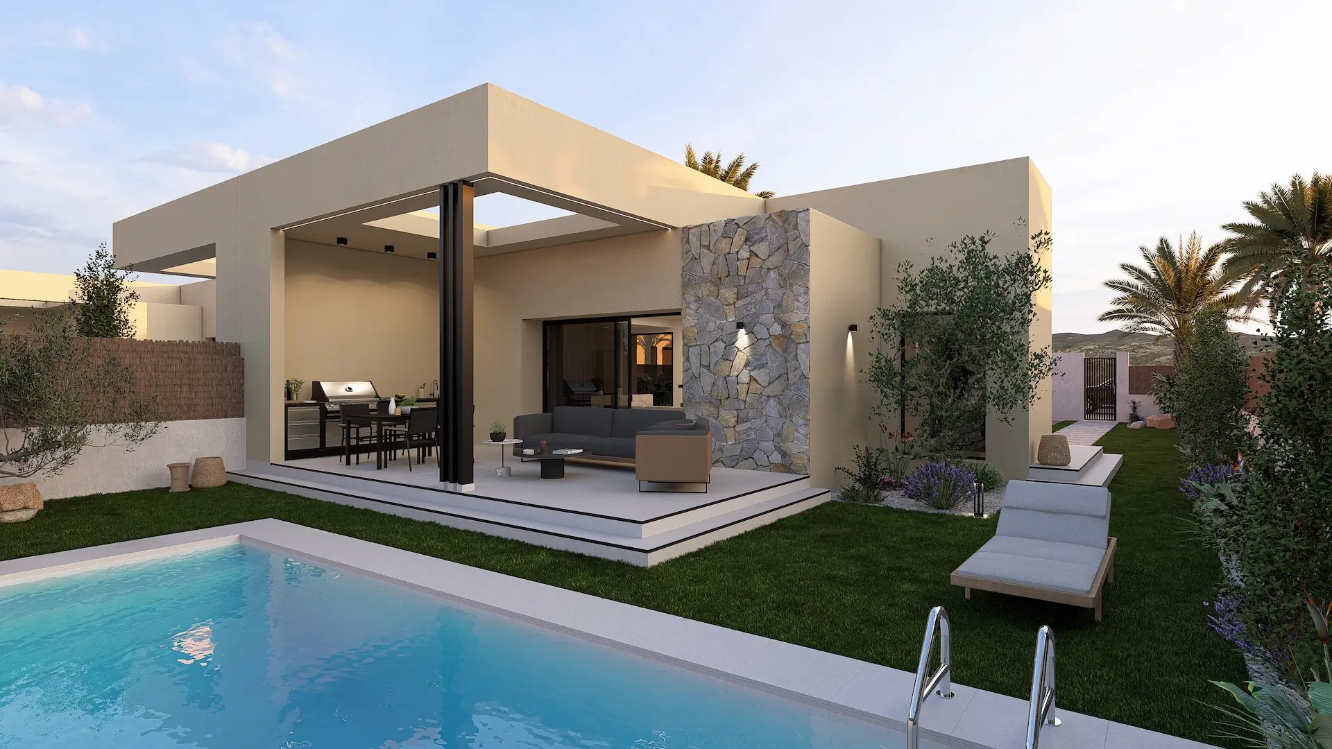 This elegant newly built property for sale in Altaona Golf Resort, Murcia, offers an exceptional combination of design, tranquility, and modern comfort. Situated on a generous plot of 610m² within one of the region’s most prestigious golf resorts, you will enjoy panoramic views of the mountains and the lush fairways. The villa stands out for its contemporary architecture, spacious layout, and perfect balance between indoor and outdoor living.