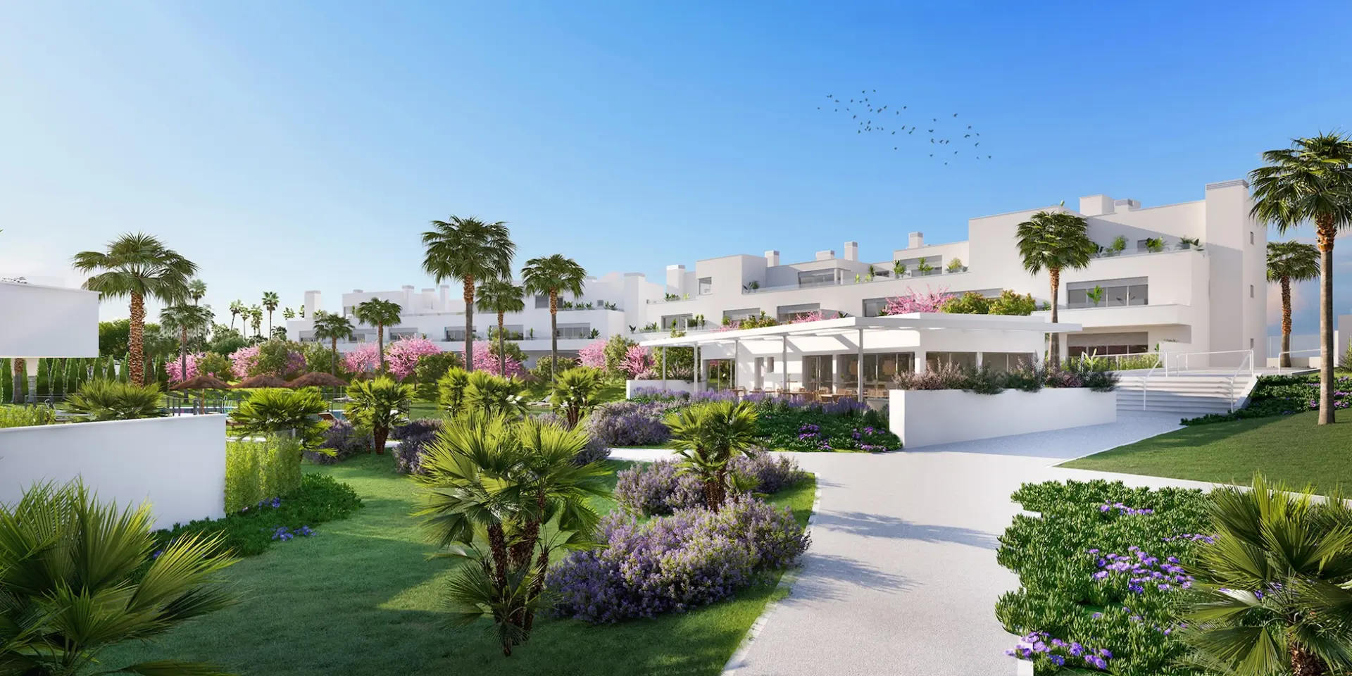 Step outside and you’ll find beautiful shared spaces designed for both relaxation and connection. The landscaped gardens, sun-soaked pool area, and stylish outdoor spaces give you plenty of room to unwind or spend time with friends. Many homes offer sea or mountain views—perfect for soaking in the surroundings and feeling right at home in the Costa del Sol sunshine.