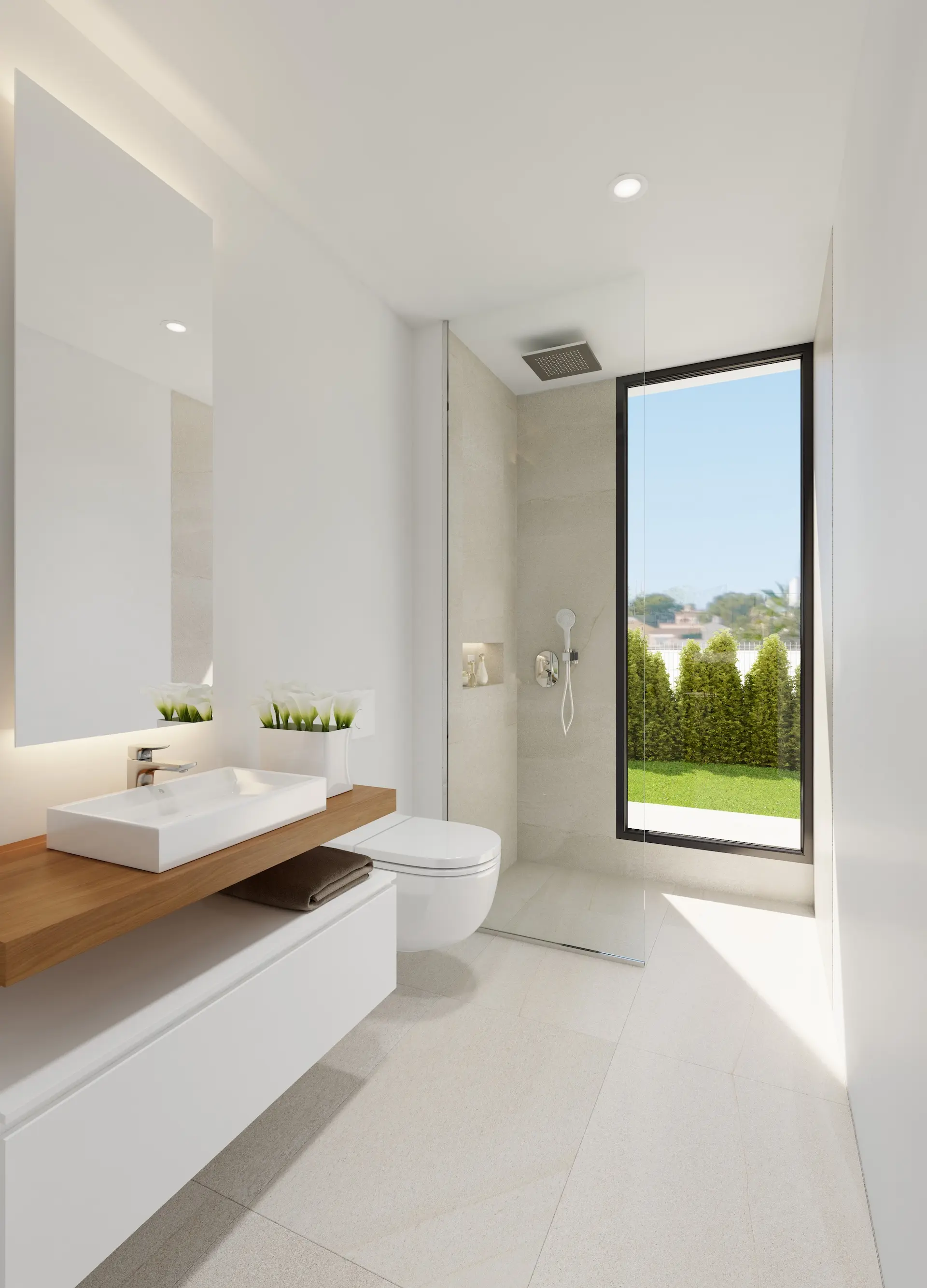 Outside, you will find a private swimming pool surrounded by natural grass and trees – an idyllic place to relax or entertain friends. The properties with a basement offer additional living space, perfect for a gym, home cinema, or guest accommodation, and boast an impressive double-height ceiling in the living room for an extra sense of space.
