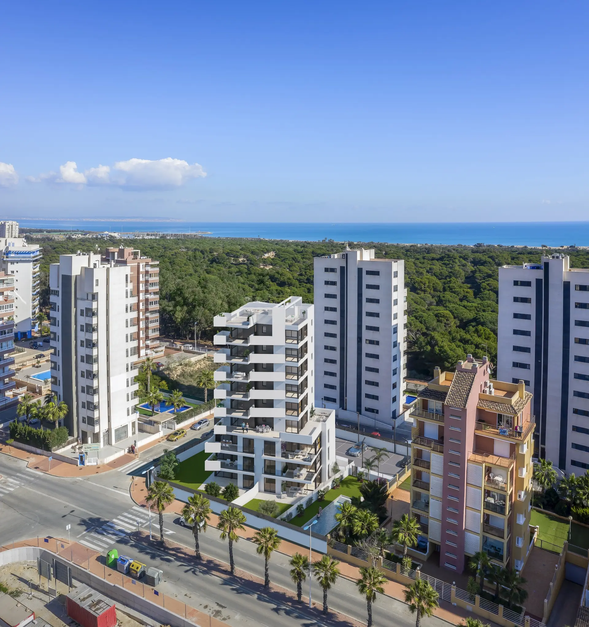 New apartment complex, only 950m from the sea in Guardamar del Segura. The complex is located very close to the port and next to the beautiful pine forest and dunes that embodies the municipality of Guardamar.