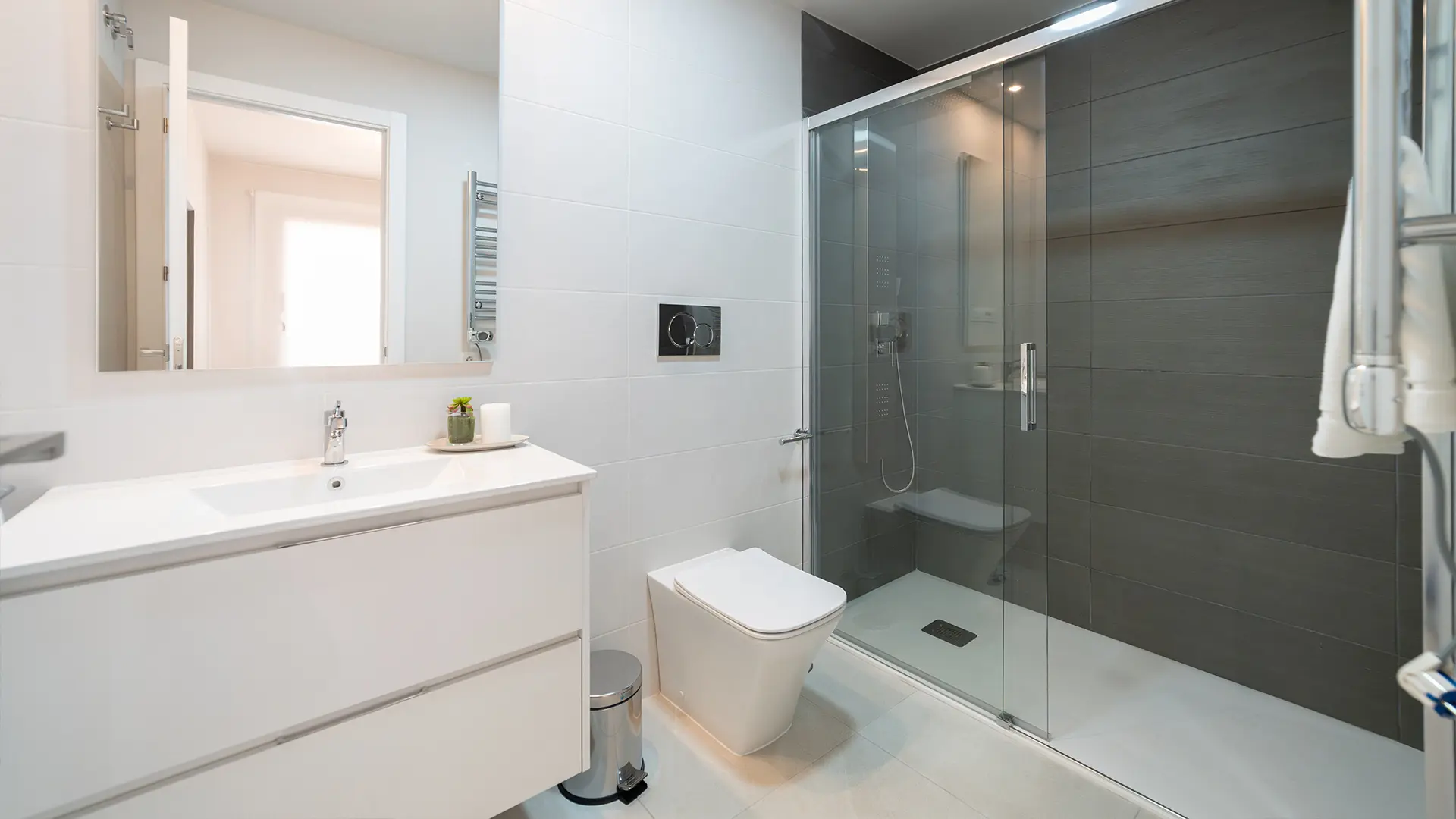 The outdoor spaces are made to enjoy every moment. The gated community offers fantastic communal areas, including 2 adult pools, 2 kids’ pools, 2 jacuzzis, a heated pool for cooler days, and areas to relax in the sun. Kids can enjoy 2 playgrounds and safe open spaces, while families and friends can gather at the central plaza, walk around landscaped gardens, or simply take in the sea breeze.