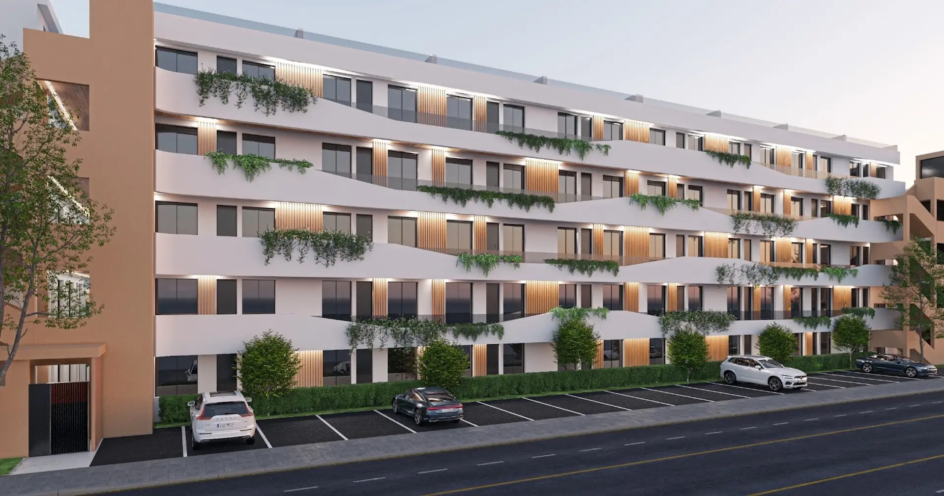 The residential complex is composed of several apartment blocks distributed over five levels, each offering open views of the community gardens and pools. Buyers can choose from three distinct layouts: ground floor apartments with extended outdoor spaces, mid-floor apartments with generous 18 m² terraces, and penthouses with private rooftop terraces. All homes feature three bedrooms and two bathrooms, and come equipped with white goods, indoor and outdoor lighting, and pre-installation for ducted air conditioning. There is an open-air parking area within the community, and buyers also have the option to purchase a garage space and storage room.
