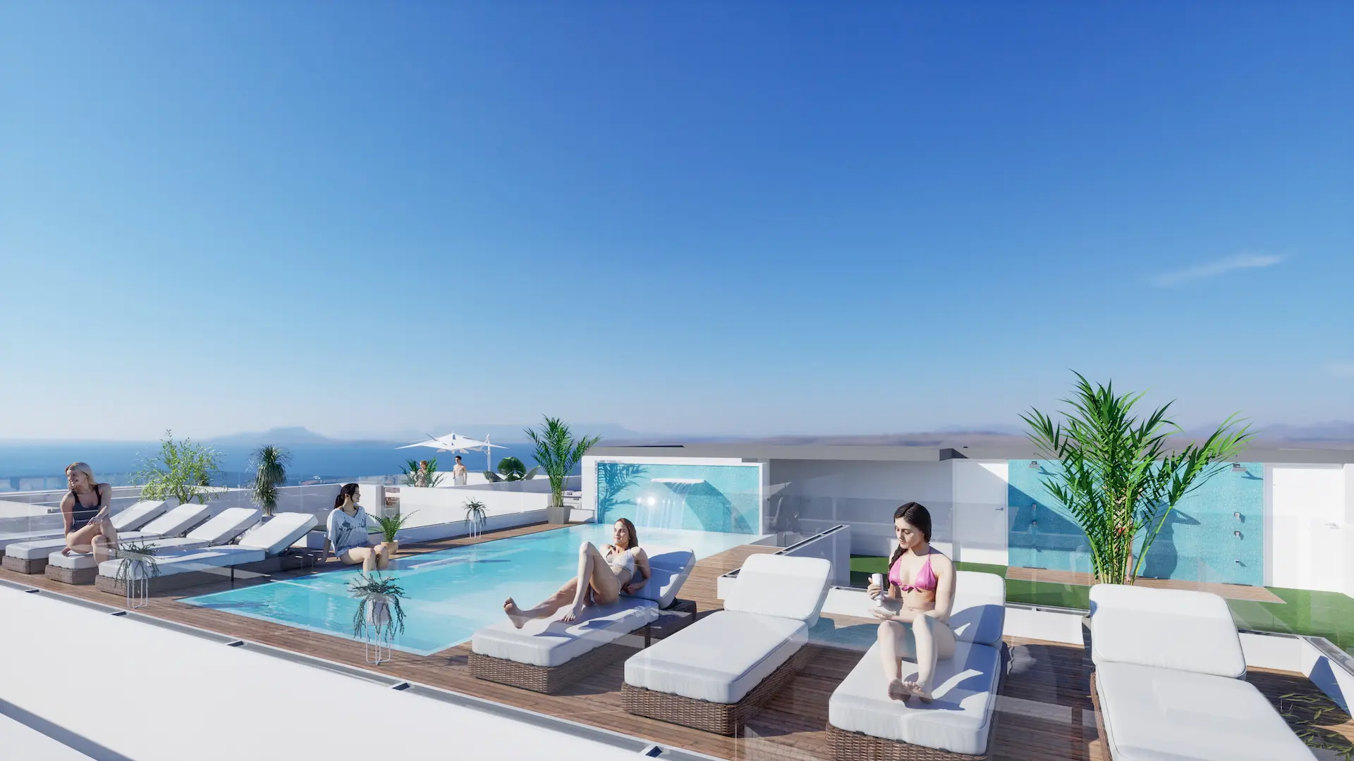 Enjoy fantastic rooftop facilities such as a swimming pool, sauna, and outdoor shower. If you opt for a penthouse, you will have your own solarium, ideal for sunbathing or enjoying the views.